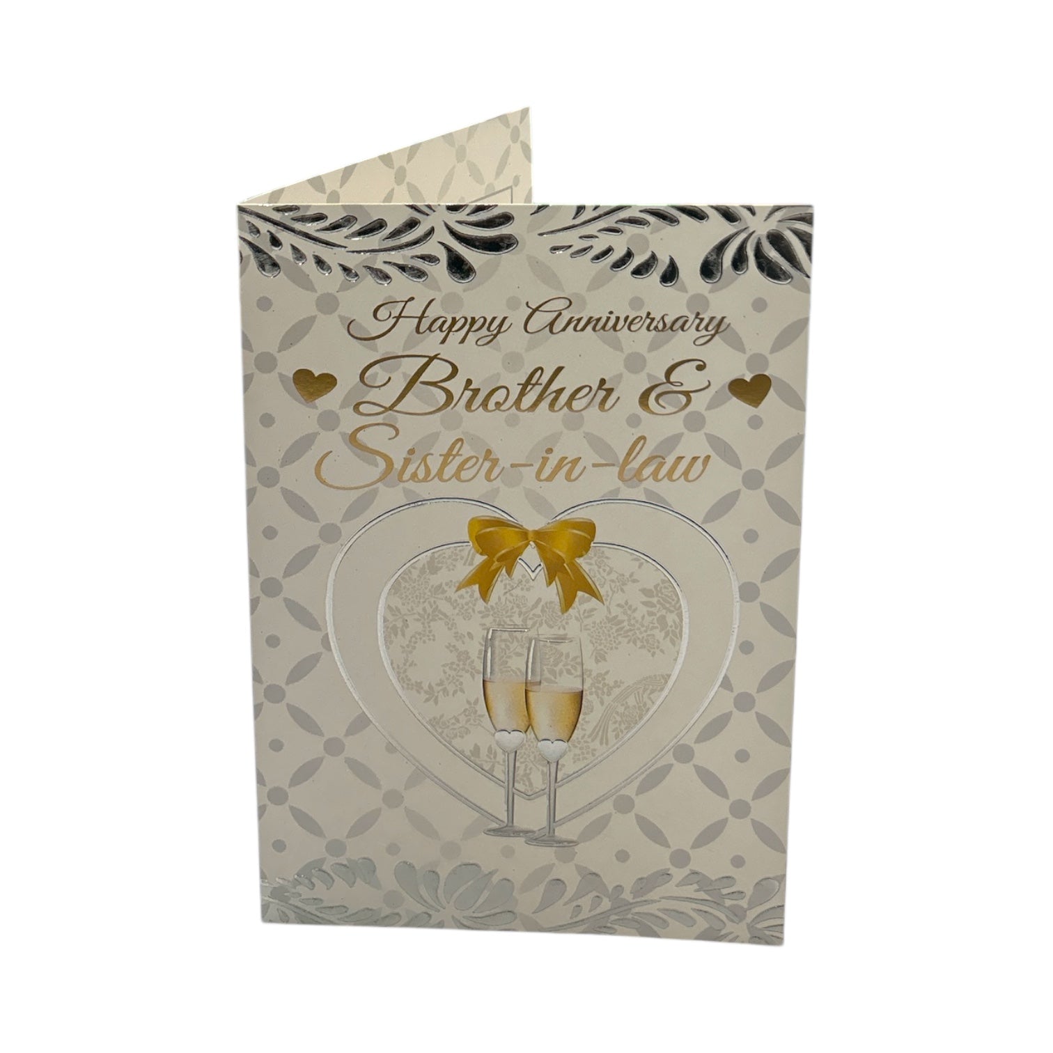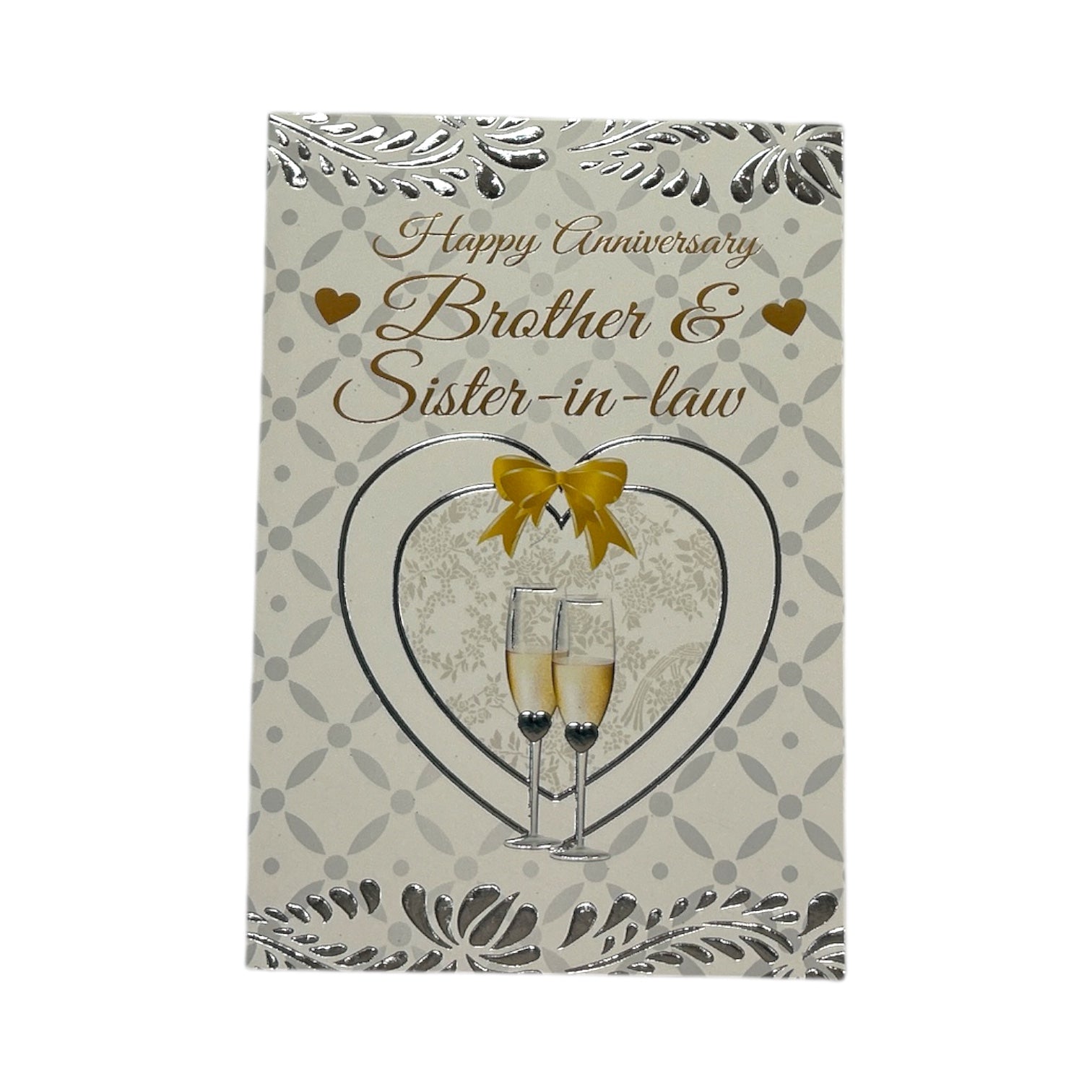 Brother & Sister-In-Law Heart Frame Champagne Glass Design Anniversary Card