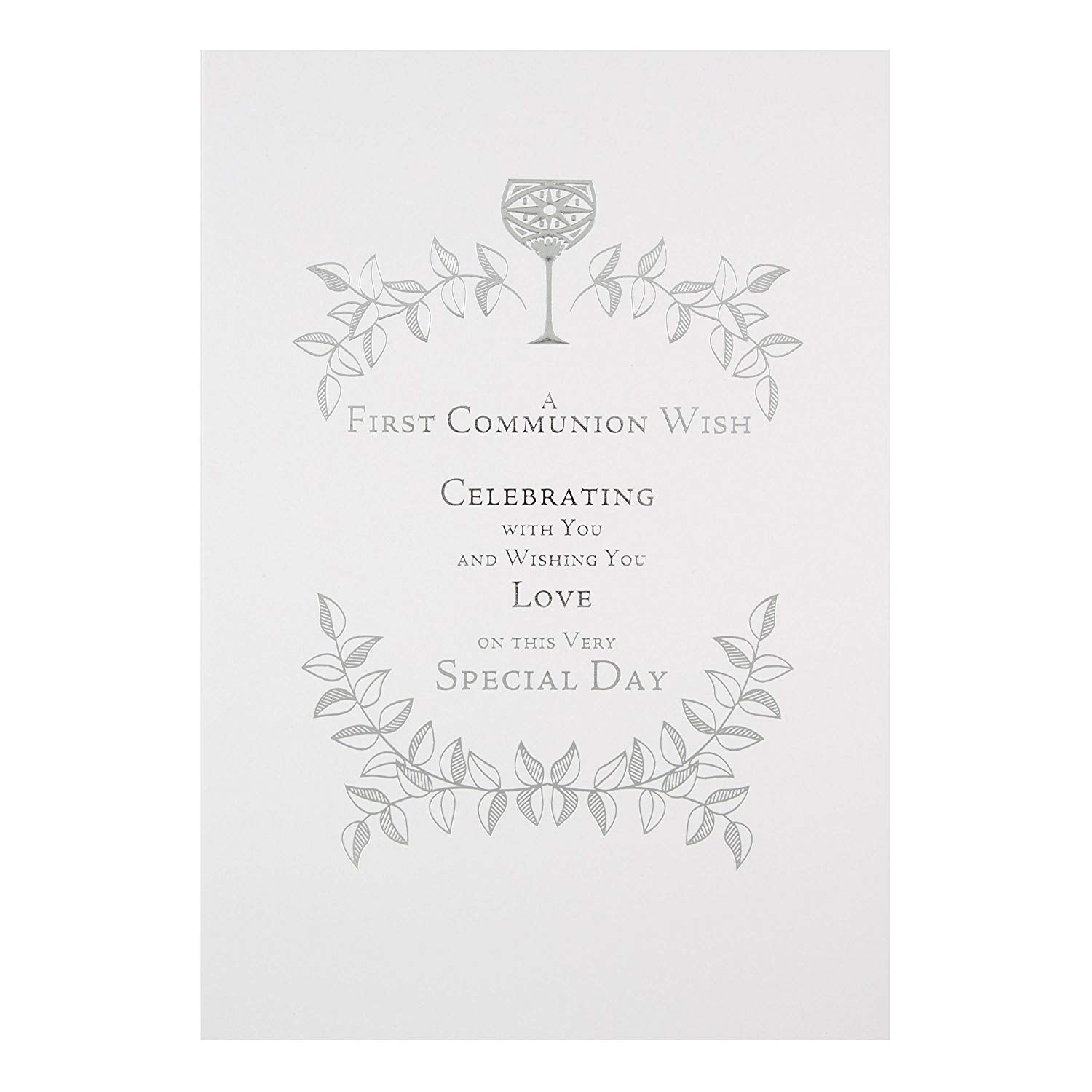 Send special wishes on their Communion with this traditional card from Hallmark. Finishes: Foil. Includes: White Envelope. Royal Mail Postage: Standard Letter Size. Size: 233 x 164mm.
