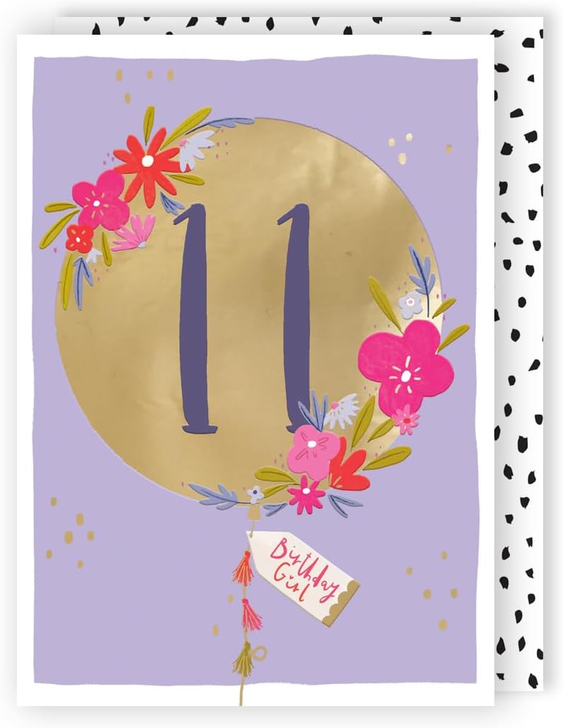 Celebrate turning eleven and youthful joy with a blooming floral surprise You are viewing: A Birthday Greeting Card by Second Nature Occasion: Great for 11th Birthday celebrations! Details: This eco-friendly Contemporary Card has been thoughtfully designed by Second Nature as part of their Lemon & Lime range. Featuring a floral eleventh birthday balloon with the caption '11 Birthday Girl', this foiled card is bound to make a special someone feel lavish. Size: 13cm x 18cm or 5" x 7"