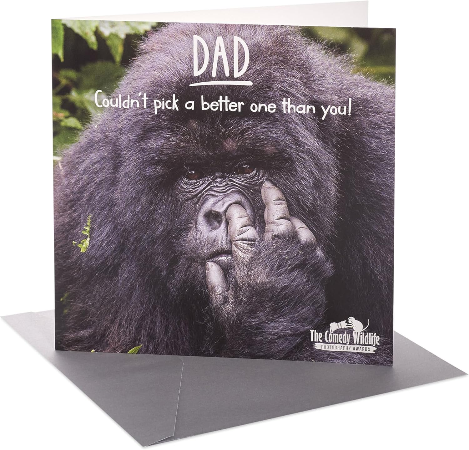 A hilarious birthday card for your dad, featuring a photograph from The Comedy Wildlife Awards of a gorilla picking his nose and a wonderfully grotty play on words! Message Inside Reads: Happy Father's Day! Card Size: 15.9cm x 15.9cm | Envelope Included