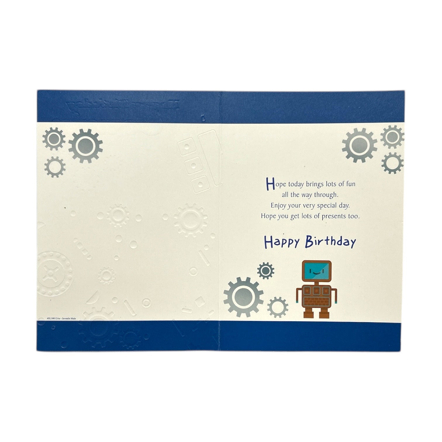 Cousin Male Juvenile Blue Robots Design Birthday Card