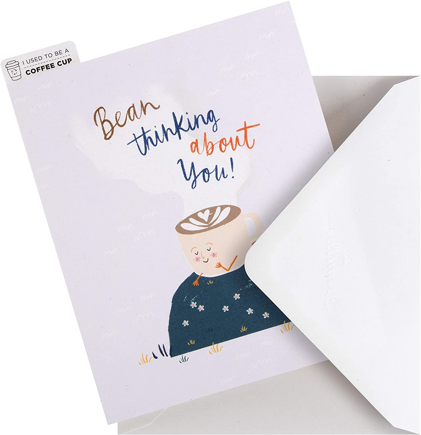 Let them know you've been thinking about them and send them a little shot of love with this cute card from Hallmark's Cup Cycling collection in association with James Cropper. Illustrated Design. Card is Made from a Combinations of Recycled Disposable Coffee Cups and FSCⓇ Certified Paper. Plain White Envelope. Message Inside Reads: Blank for Your Own Message. Measures 16.2cm by 13.5cm, Within Standard UK 'Letter' Size Limits.