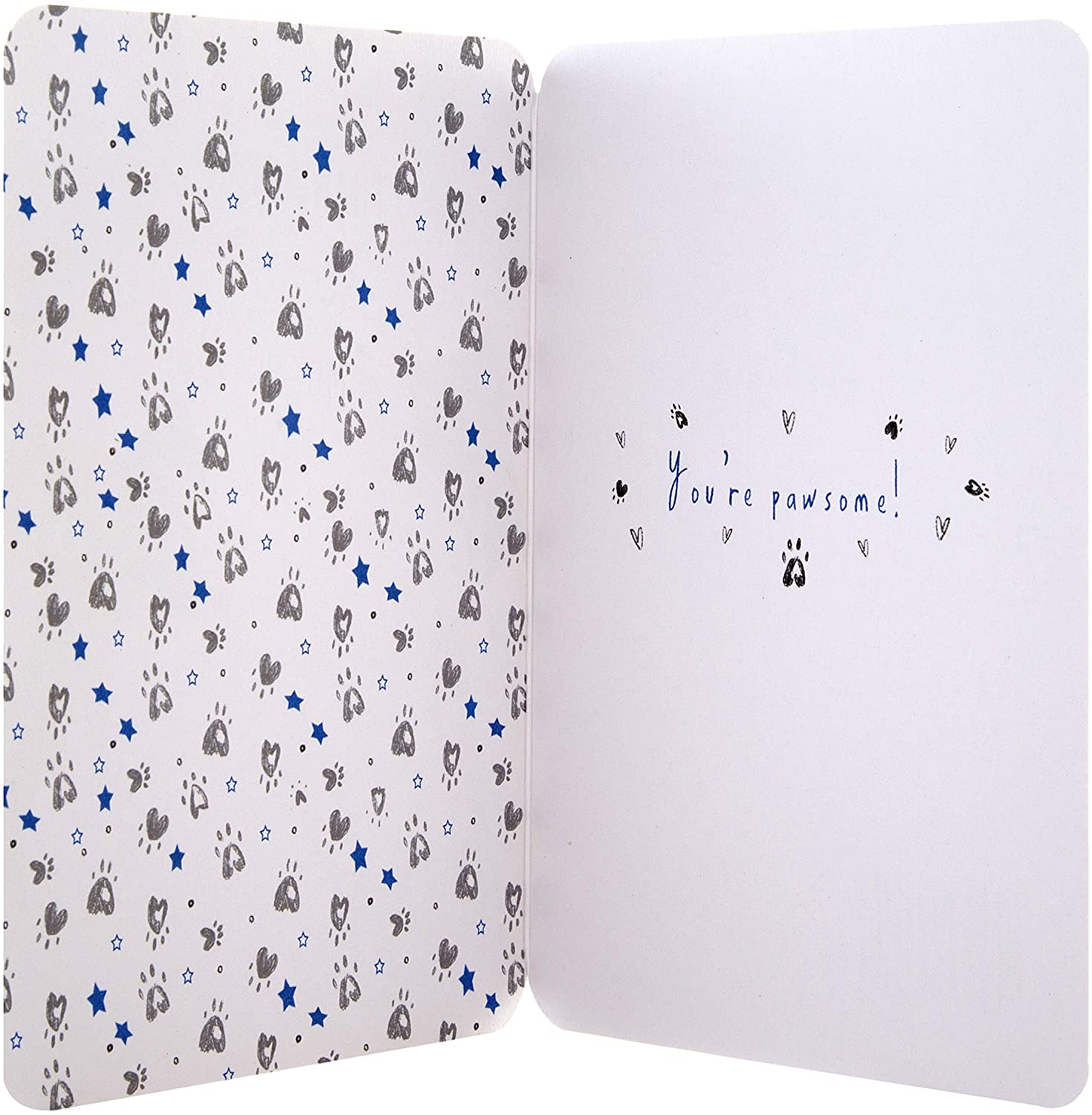 Send a pawfect thank you with this super-cute pet themed card from Hallmark. 100% Recyclable FSC Certified Board with Blue Foil Lettering and Design Details. Message Inside Reads: You're Pawsome! Comes complete with a Plain White, Hallmark Branded Envelope. Measures 17.3cm by 11.9cm, Within Standard UK 'Letter' Size Limits.