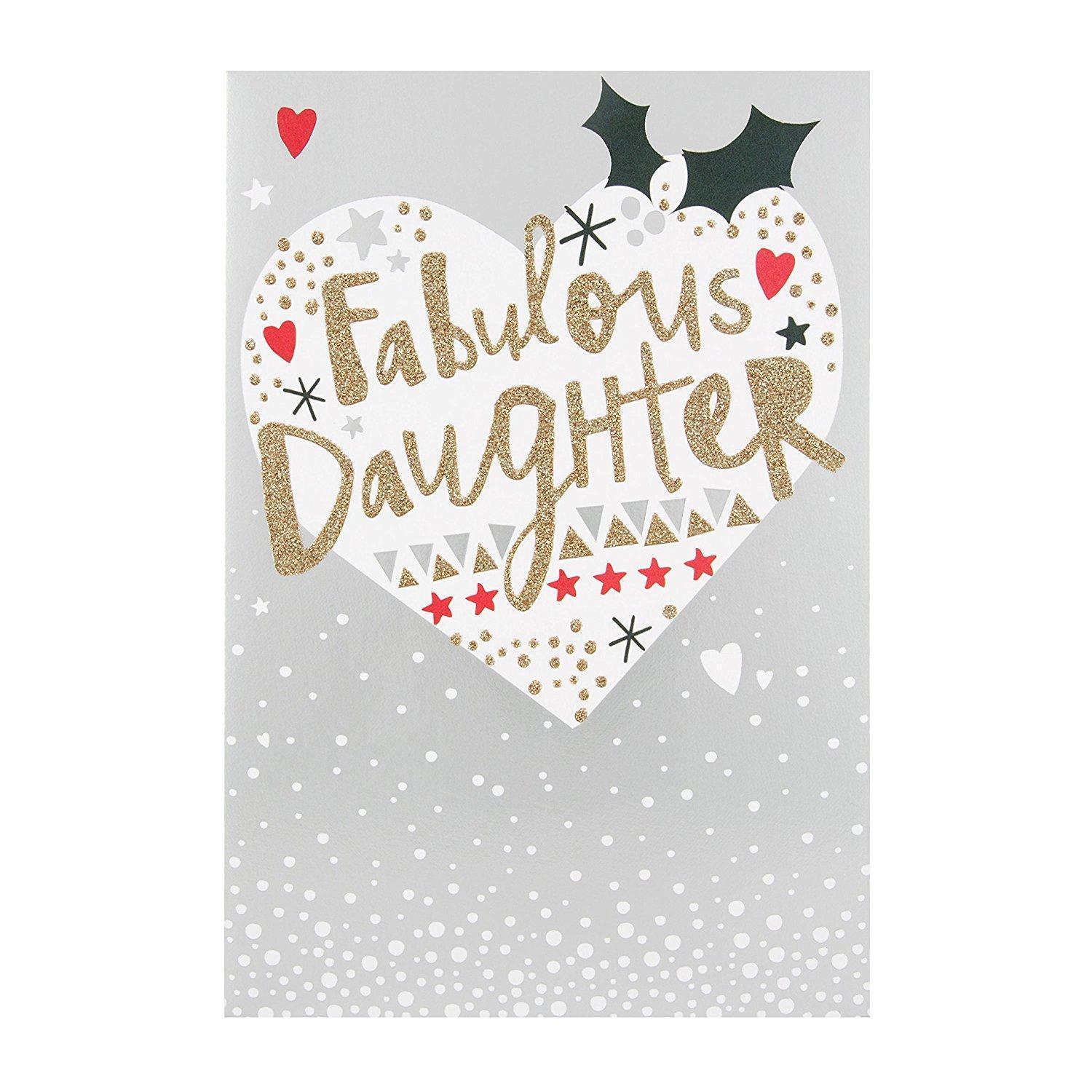 Send Christmas wishes to a fabulous Daughter with this contemporary card from Hallmark. Finishes: Foil; Glitter. Includes: Red Envelope. Royal Mail Postage: Standard Letter Size. Size: 210 x 146 mm.