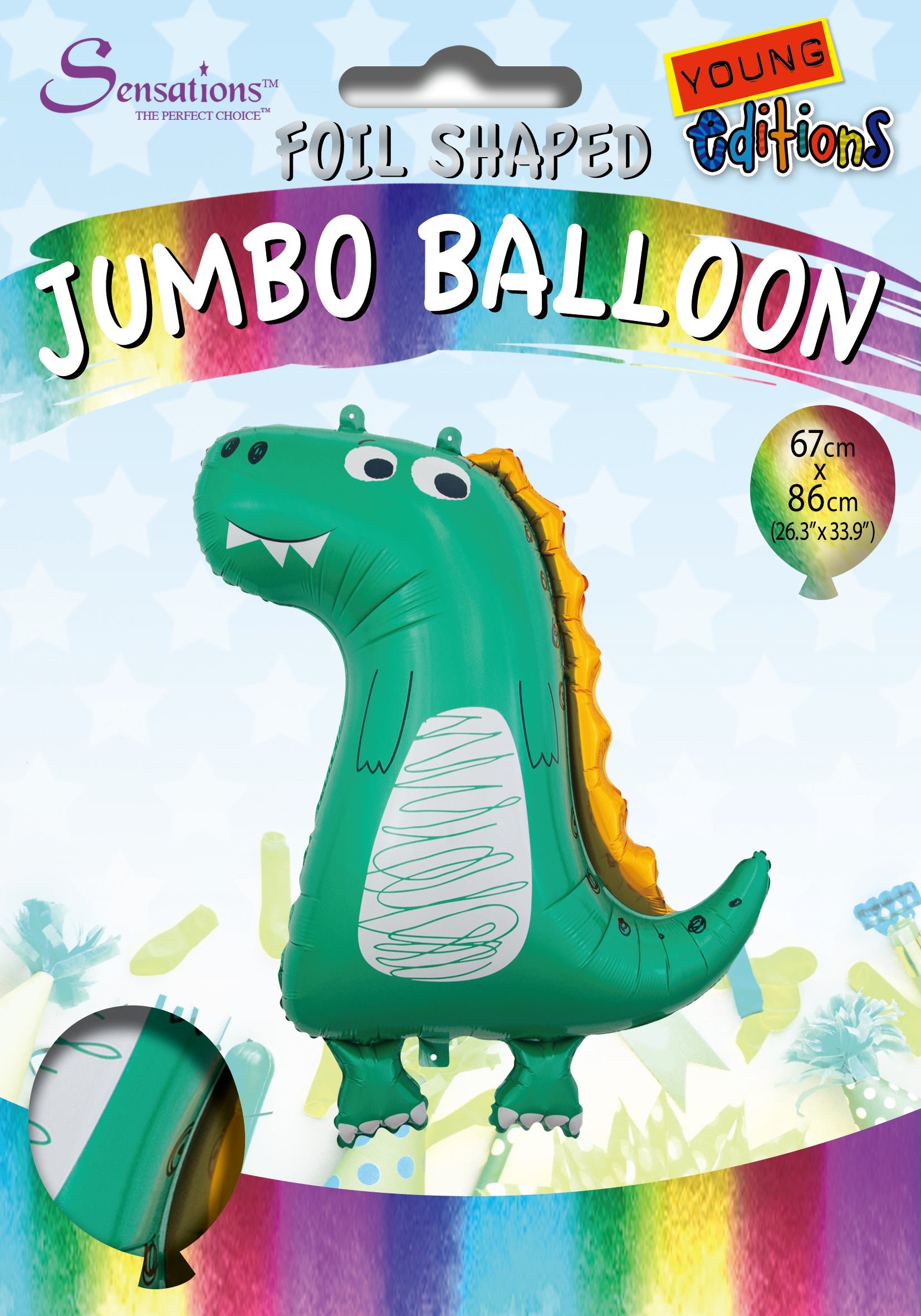 Dinosaur Design Jumbo Foil Balloon. Approx Size: 67 x 86cm. Comes flat packed, helium not provided.