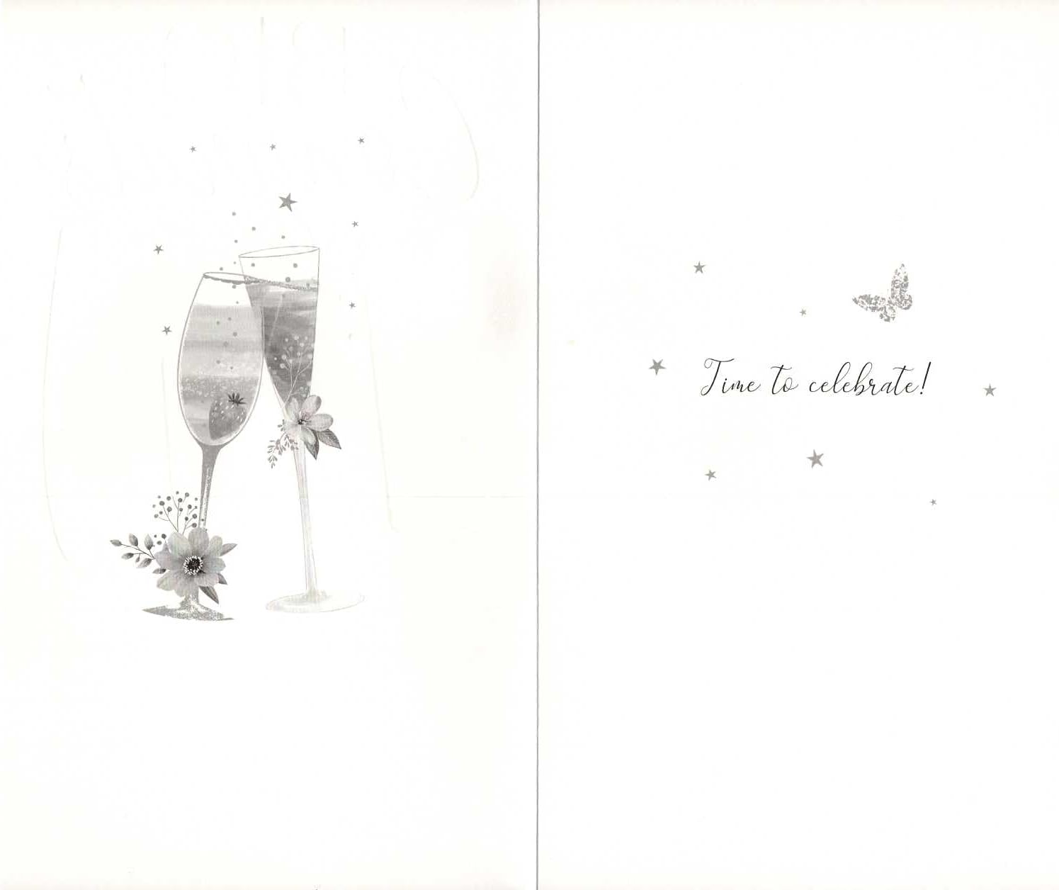 Celebrate by sending them a a beautifully hand-finished greeting card that's bursting with detail especially for them! You are viewing: A hand-finished greeting card Occasion: Perfect to send your Congratulations Details: A popular embellished & foiled greeting card by Second Nature from their luxury Champagne range featuring champagne glasses Card Size: 13cm x 23cm 5" x 9"