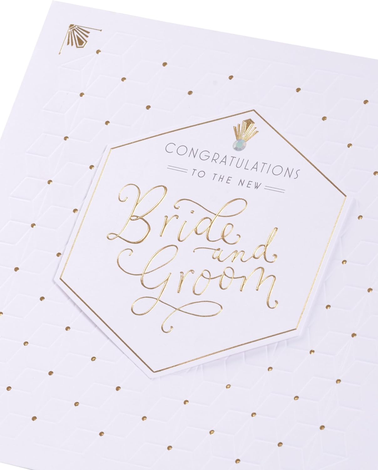 Celebrate the new bride and groom with this contemporary wedding card featuring a raised 3D hexagonal message tag. It is enhanced with gold foil and embossed details for a luxe feel. Message Inside Reads: Hope your new life together is filled with endless love and happiness. Congratulations - Enjoy Every Moment. Card Size: 186mm x 186mm. Envelope Included. This product is FSC-labelled, meaning you’re supporting responsible forestry and helping fight climate change, protect biodiversity, and support communities.