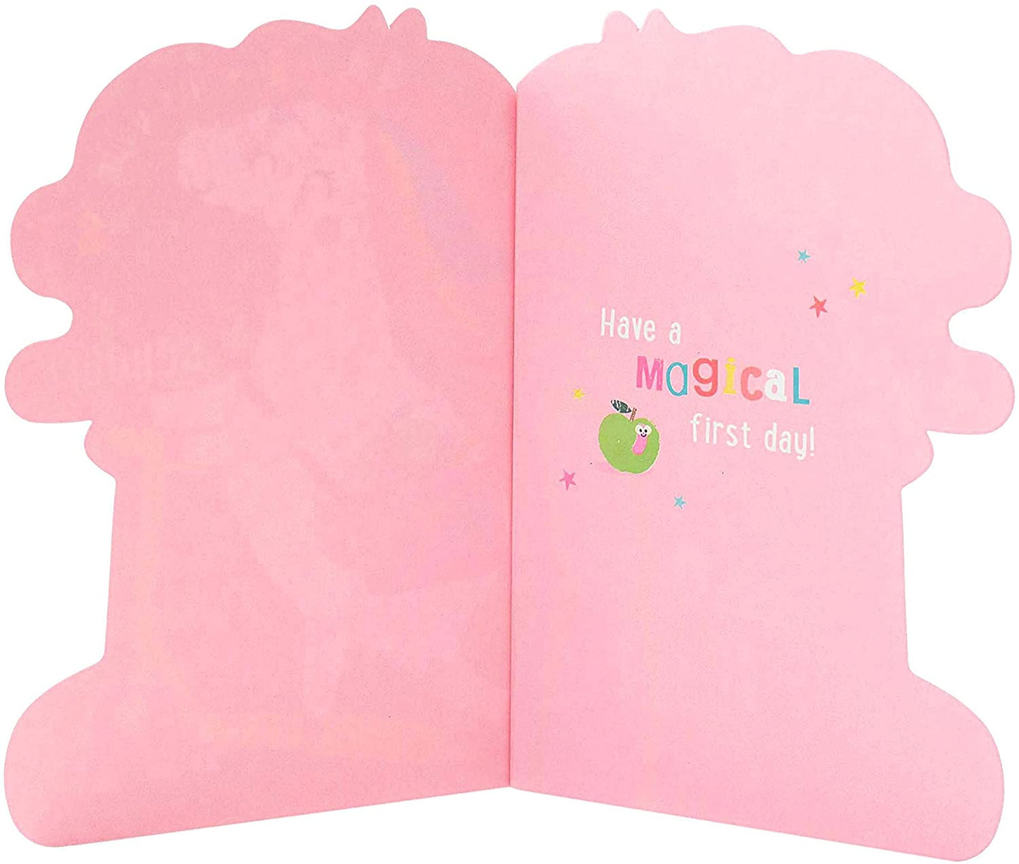 Wish them a first day at school that’s as magical as a unicorn riding a scooter with this fun specially shaped card. Message inside reads: Have a magical first day! Envelope included Card size: 137mm x 159mm Card for 1st Day at School