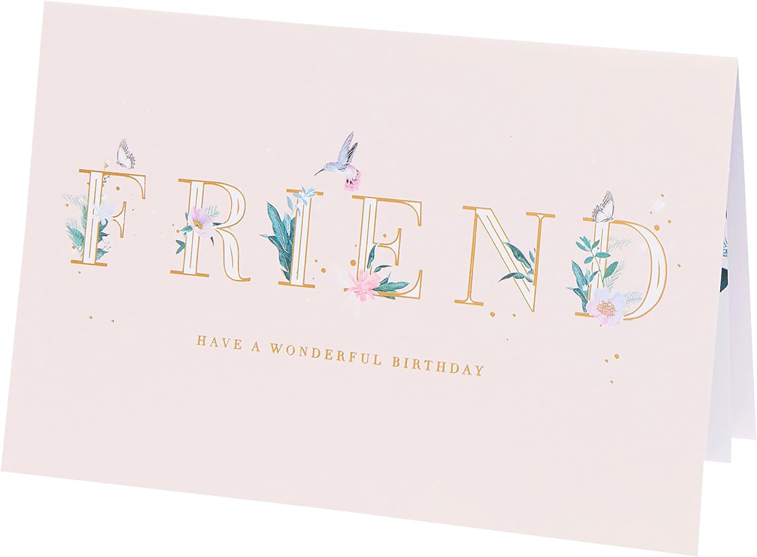 Created in partnership with the Royal Horticultural Society, this beautiful floral card is perfect for sending birthday wishes to a friend you feel lucky to have. Message Inside: So lucky to have you as a friend Happy Birthday. Card Size: 184mm x 121mm. Envelope Included.