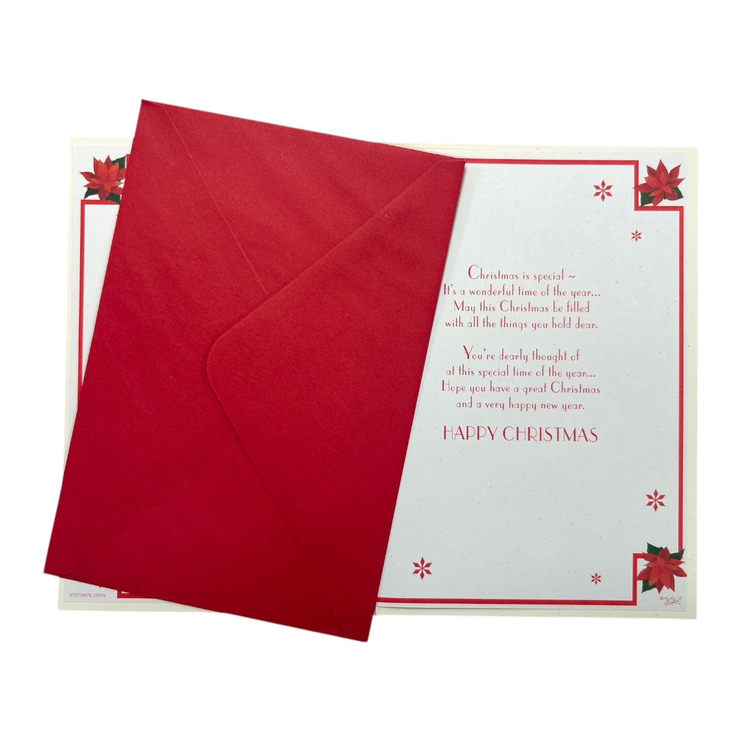 Send warm festive wishes to your daughter-in-law with this beautifully designed Christmas card. The front features a vibrant poinsettia wreath accented with golden glitter, surrounding the text “For A Dear Daughter-in-law at Christmas.” Rich, festive colors and charming seasonal details evoke a sense of warmth, love, and holiday cheer. Perfect for expressing appreciation and spreading festive joy, this card is an ideal way to show your love during the Christmas season. Approx. size 225 x 155mm, supplied with a coordinating envelope.