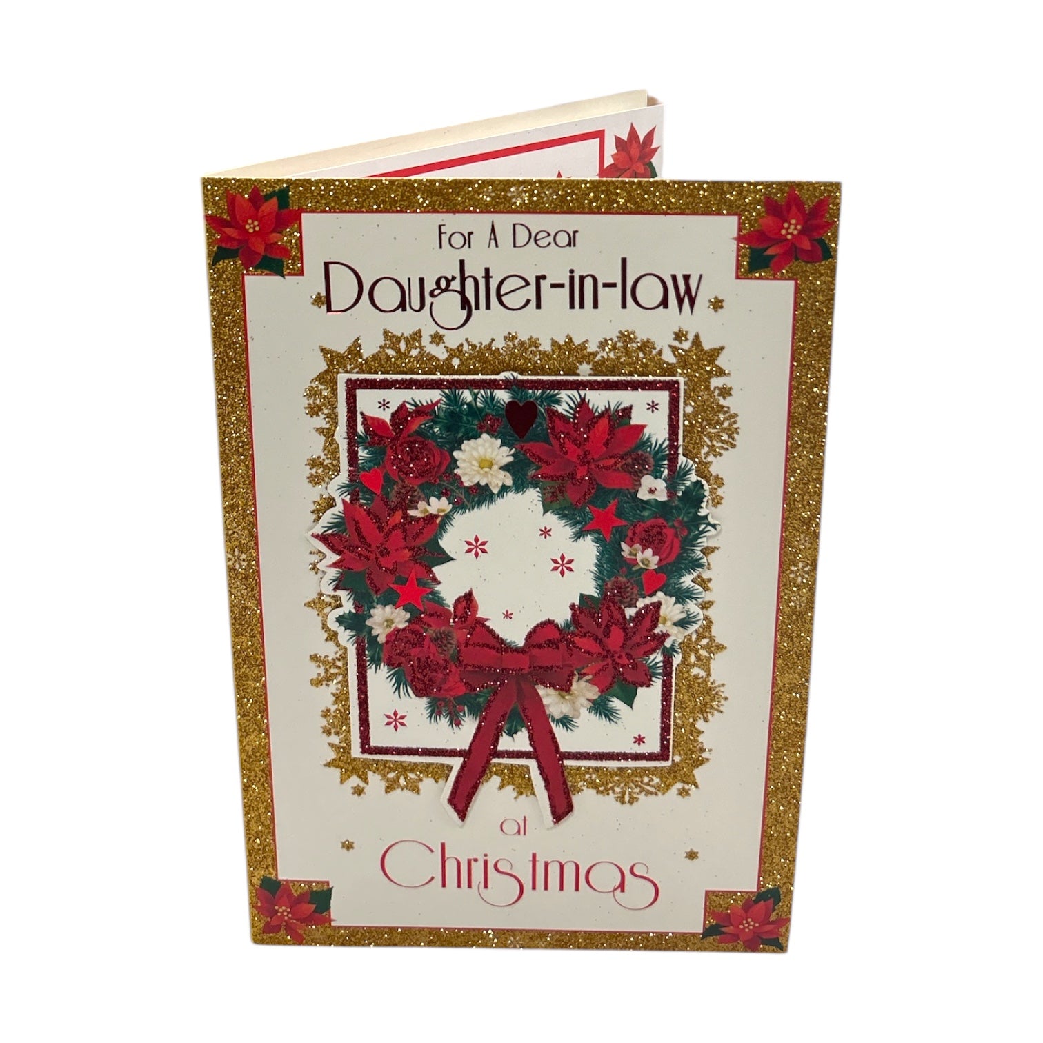 For a Dear Daughter In Law Poinsettia Wreath Design Christmas Card