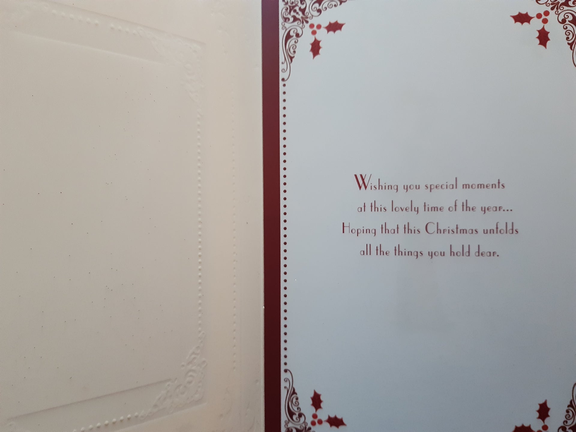 For Daughter-in-Law Elegant Woman Holding Flowers Design Christmas Card. This beautifully designed Christmas card showcases a vintage-style illustration of an elegant woman holding a festive bouquet, set within an ornate gold and red border. The gold glitter background adds a touch of luxury and warmth, while the intricate details enhance its sophistication. Perfect for expressing festive love and appreciation, this card conveys heartfelt Christmas wishes to a special daughter-in-law. Approx. size 275 x 175mm, supplied with a coordinating envelope.