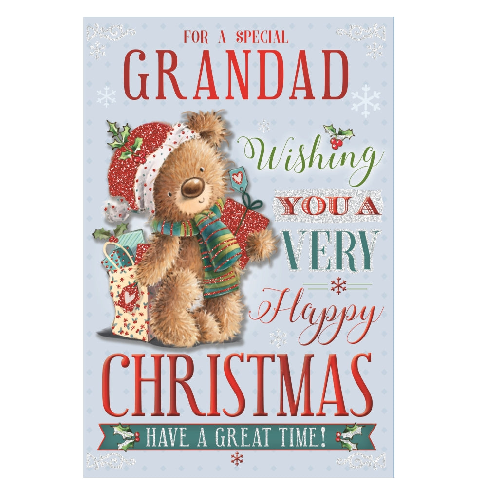 For a Special Grandad Teddy With Shipping Gift Bag Design Christmas Card. Approx Size 225 x 155mm.