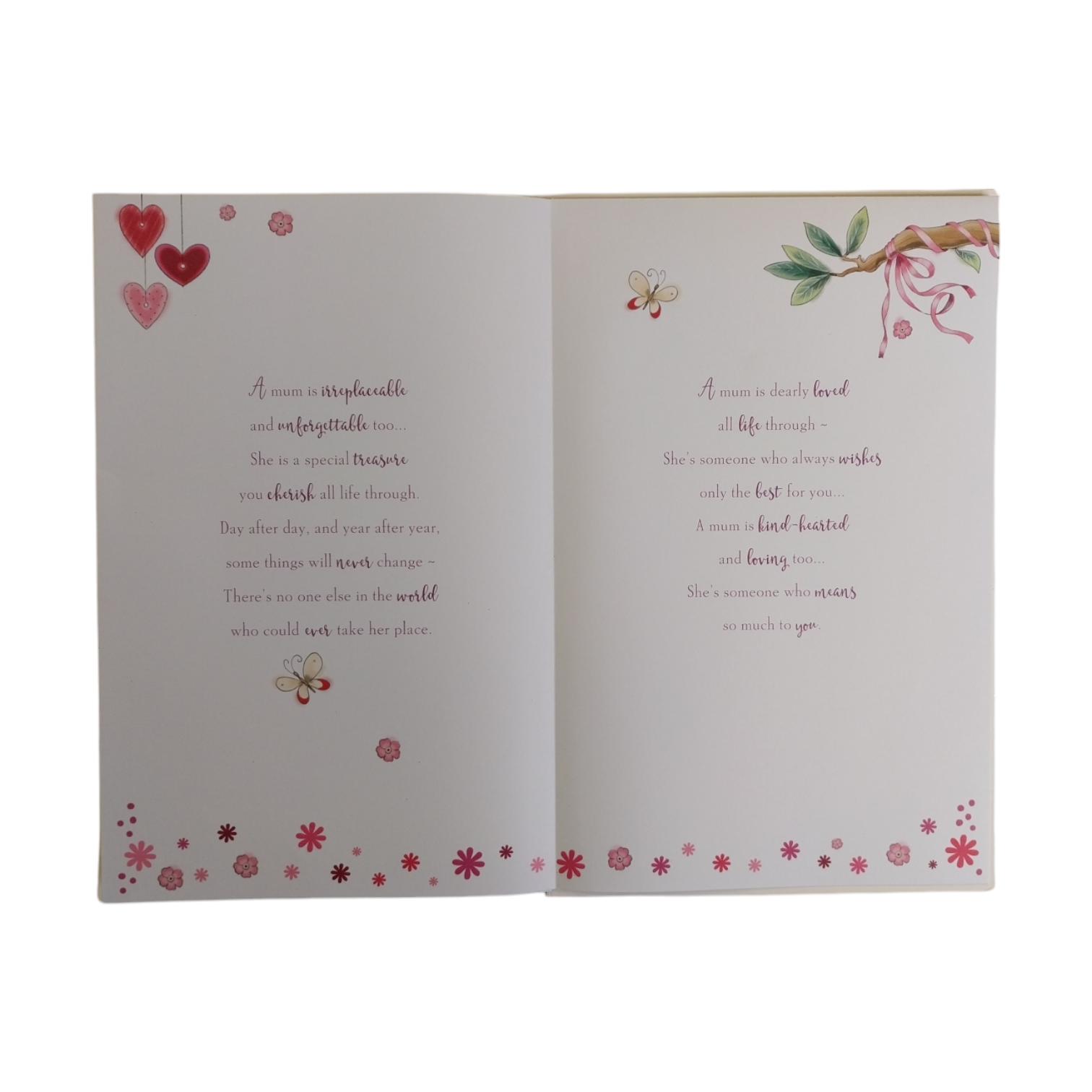 For A Special Mum Teddy Design 8 Page Insert Luxury Foil and Glitter Finished Mother's Day Card. Give your wonderful Mum some love on Mother's Day and fill her day with love, with this beautifully embossed Mother's Day card from Xpress Yourself. The perfect way to make her feel extra special. This card comes with the heartfelt message inside, features foil print details, embossed and red glitter finished. The perfect card to send so many heartfelt words for your Mum!