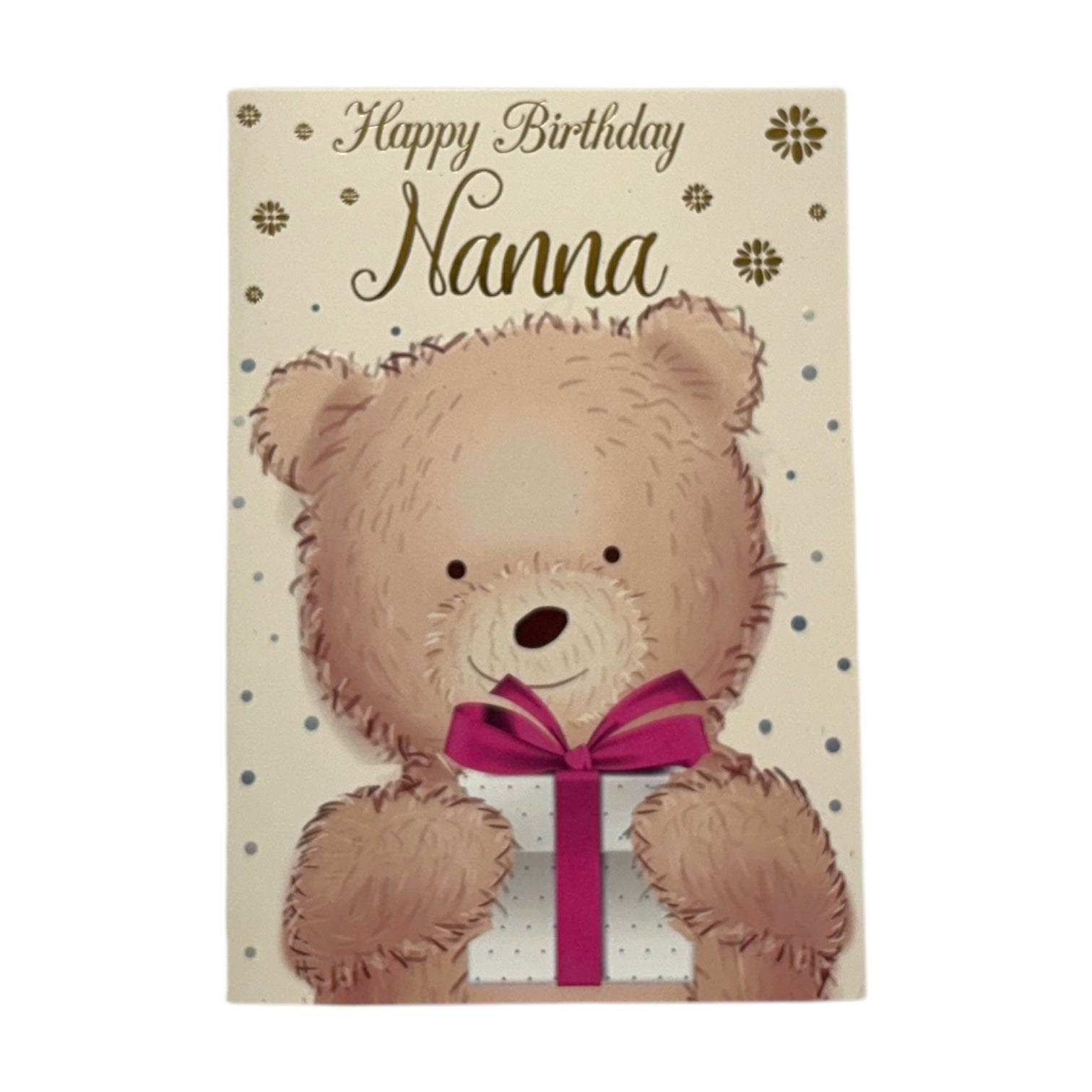 This Nanna Birthday Greeting Card is a sweet and charming way to celebrate a special grandmother. It features an adorable teddy bear holding a beautiful gift, symbolizing love and appreciation. The soft light cream background is elegantly decorated with scattered gold-colored flowers, adding a delicate touch. The words "Happy Birthday Nanna" are gracefully written above the bear, making the message warm and heartfelt. Inside, the card contains lovely birthday wishes, making it the perfect way to brighten Nanna’s special day. The card comes with a coordinating envelope. Card size: Approx. 19.5 x 14 cm.