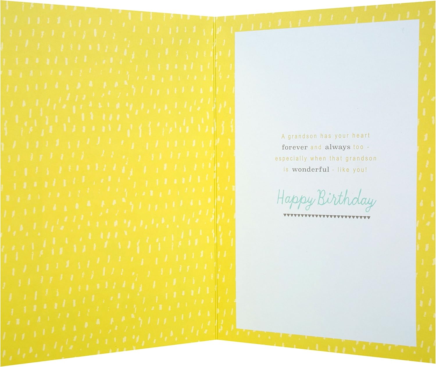 Send love to a special Grandson with this contemporary Birthday card from Hallmark. Finishes:: Foil; Glitter Includes: White Envelope Royal Mail Postage: Standard Letter Size. Size: 237 x 165mm.