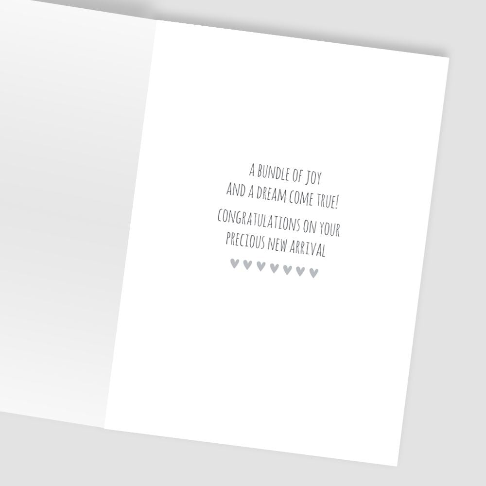 You are viewing: A pretty hand-finished greeting card Occasion: New Baby Message: A bundle of joy and a dream come true! Congratulations on your precious new arrival Details: A simple hand-finished greeting card by Second Nature from their Yours Truly range sealed in a protective wrapping complete with an envelope. Size: Standard 12cm x 17cm 5" x 7"