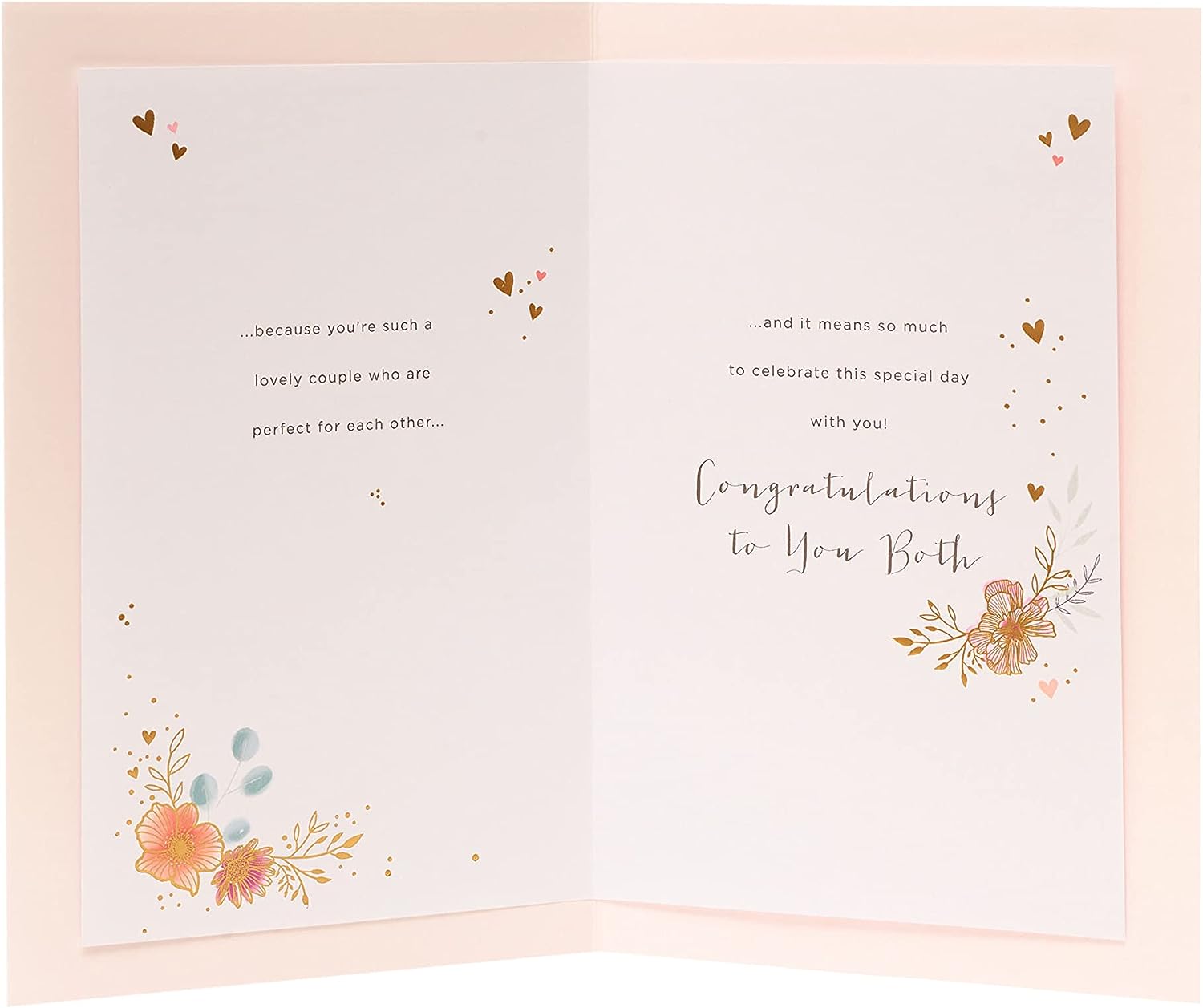 Send wedding day wishes to a lovely couple with this champagne-themed card, featuring laser cut elements and gold foil details Message Inside Reads: ...and it means so much to celebrate this special day with you. Congratulations to You Both. Card Size: 165mm x 254mm. Envelope Included.