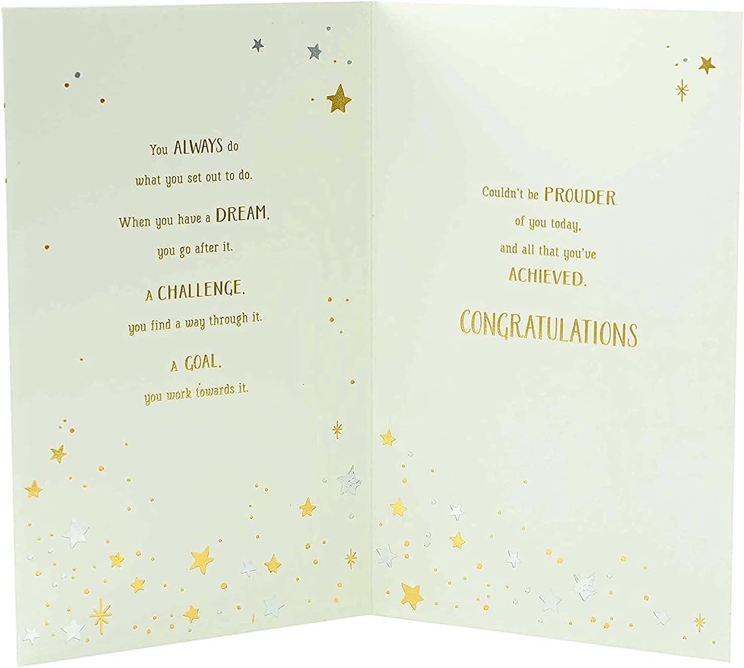 Tell them just how proud you are of their determination, hard work and, above, all their graduation success with this heartfelt card. Message inside reads: You always do what you set out to do. When you have a dream, you go after it. A challenge, you find a way through it. A goal, you work towards it. Couldn't be prouder of you today, and all that you've achieved. Congratulations. Envelope included. Card size: 133mm x 210mm.