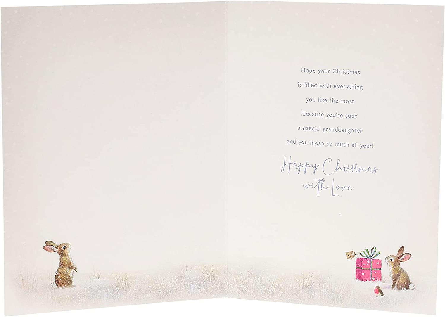 Remind your granddaughter of how much she means all year with this sweet Christmas card, finished with holographic foil lettering and snowflakes. Message Inside Reads: Hope your Christmas is filled with everything you like the most because you're such a special granddaughter and you mean so much all year! Happy Christmas with Love. Card Size: 149 x 195mm. Envelope Included.