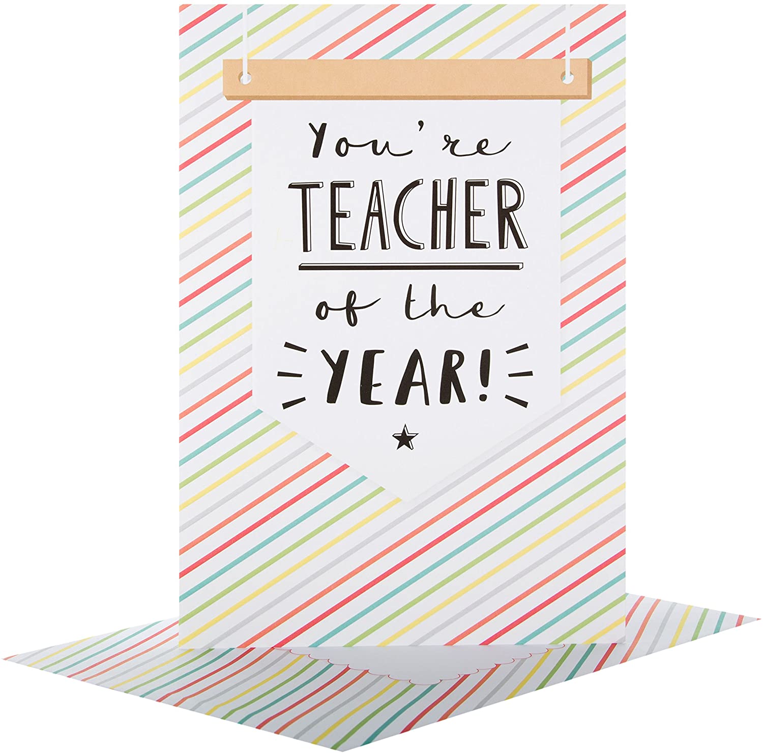 Say thanks to a special Teacher with this contemporary card from Hallmark. Finishes: Short message inside Includes: Striped Envelope Royal Mail Postage: Standard Letter Size
