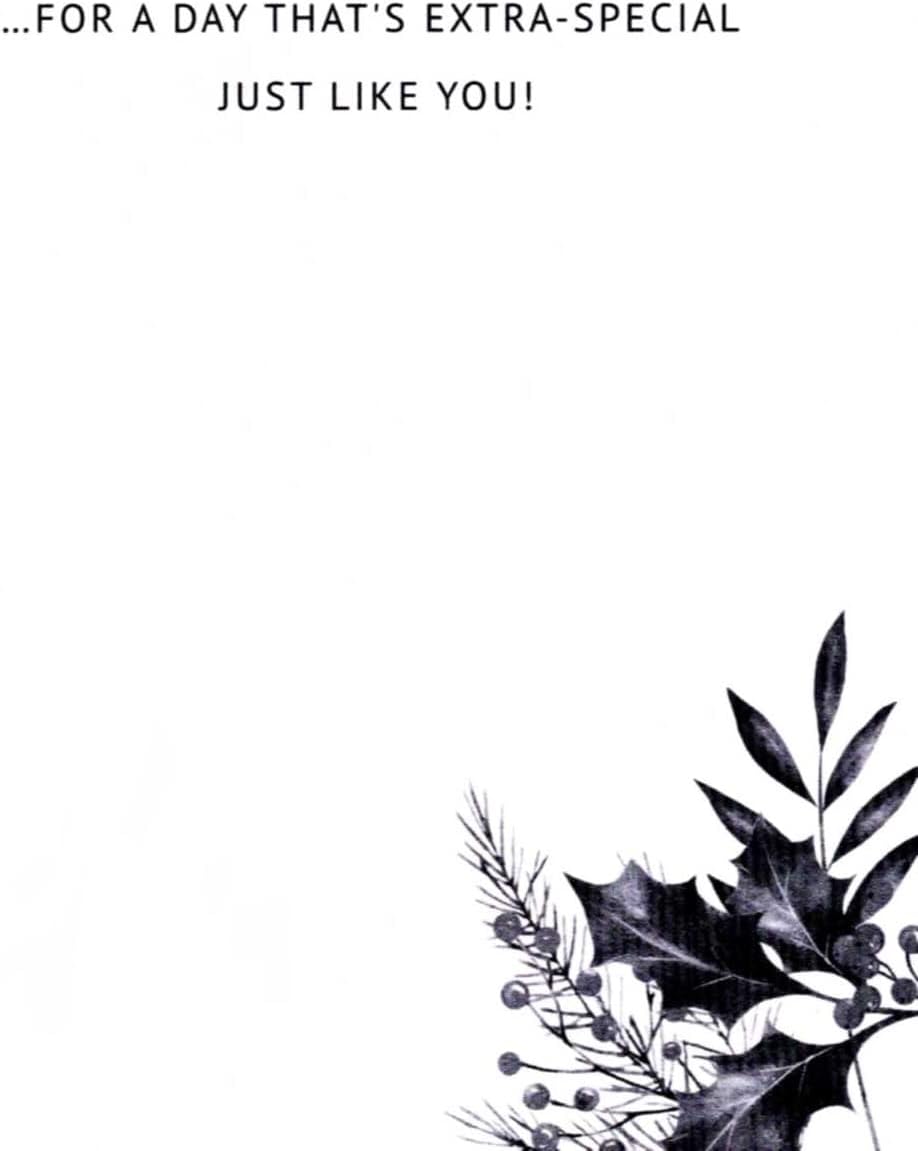 Add a touch of luxury to their Christmas with this special hand-finished To A Wonderful Mum Christmas Card You are viewing: A Christmas greeting card for a Mum Occasion: Perfect for Christmas Message Inside: …for a day that's extra-special just like you! Details: A beautiful Christmas greeting card from Second Nature's popular Champagne range featuring gold foil detailing it has been hand-finished with festive embellishments Good to know: Made from card sourced from sustainable forests each card comes protected in wrapping and complete with a quality red envelope Size: Standard 14cm x 23cm 5" x 9" Postal Size: Letter