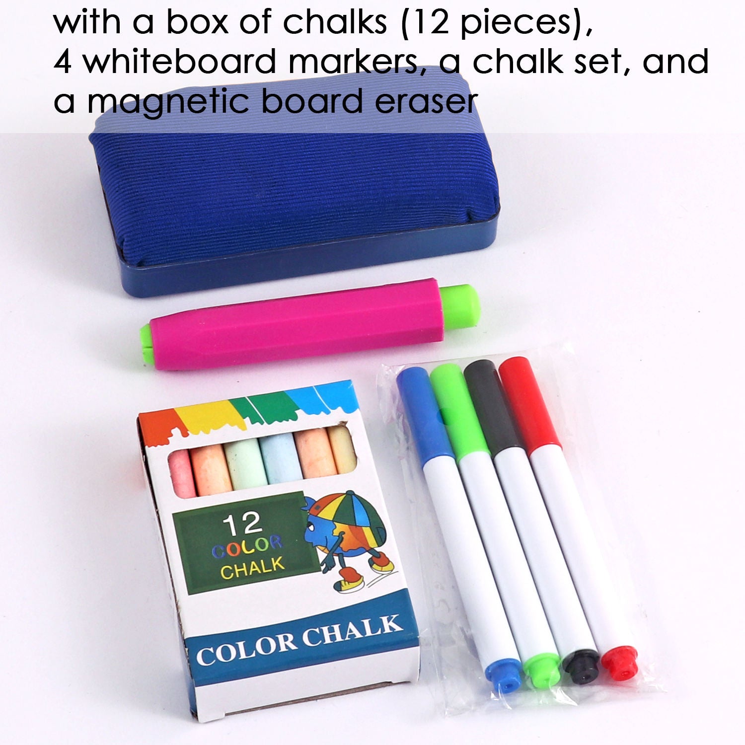 Height Adjustable and Foldable Wood Easel Kids Drawing Board 57 x 80cm . Panel size: 57x8x80cm, Height: 78-136cm, with a box of chalks(12pieces), 4 whiteboard markers, a chalk set and a magnetic eraser. Inspire creativity in young artists with our Height Adjustable and Foldable Wood Easel Kids Drawing Board. Perfectly sized with a drawing panel of 57x8x80cm, and an adjustable height ranging from 78-136cm, this easel grows with your child, providing a comfortable and ergonomic platform for their artistic endeavors at any age. Crafted from durable, child-friendly materials, the easel can easily be folded for convenient storage or transport, making it an ideal choice for both home and classroom settings. The set comes complete with a box of 12 colorful chalk pieces, 4 whiteboard markers, a comprehensive chalk set, and a magnetic eraser, ensuring your little one has all they need to explore their creativity. Whether it's drawing, painting, or scribbling, the dual-sided design offers endless possibilities, with one side perfect for chalk art and the other a wipe-clean whiteboard for markers. This versatile and interactive easel not only encourages artistic expression but also aids in the development of fine motor skills and hand-eye coordination, making it a valuable addition to your child's learning tools.