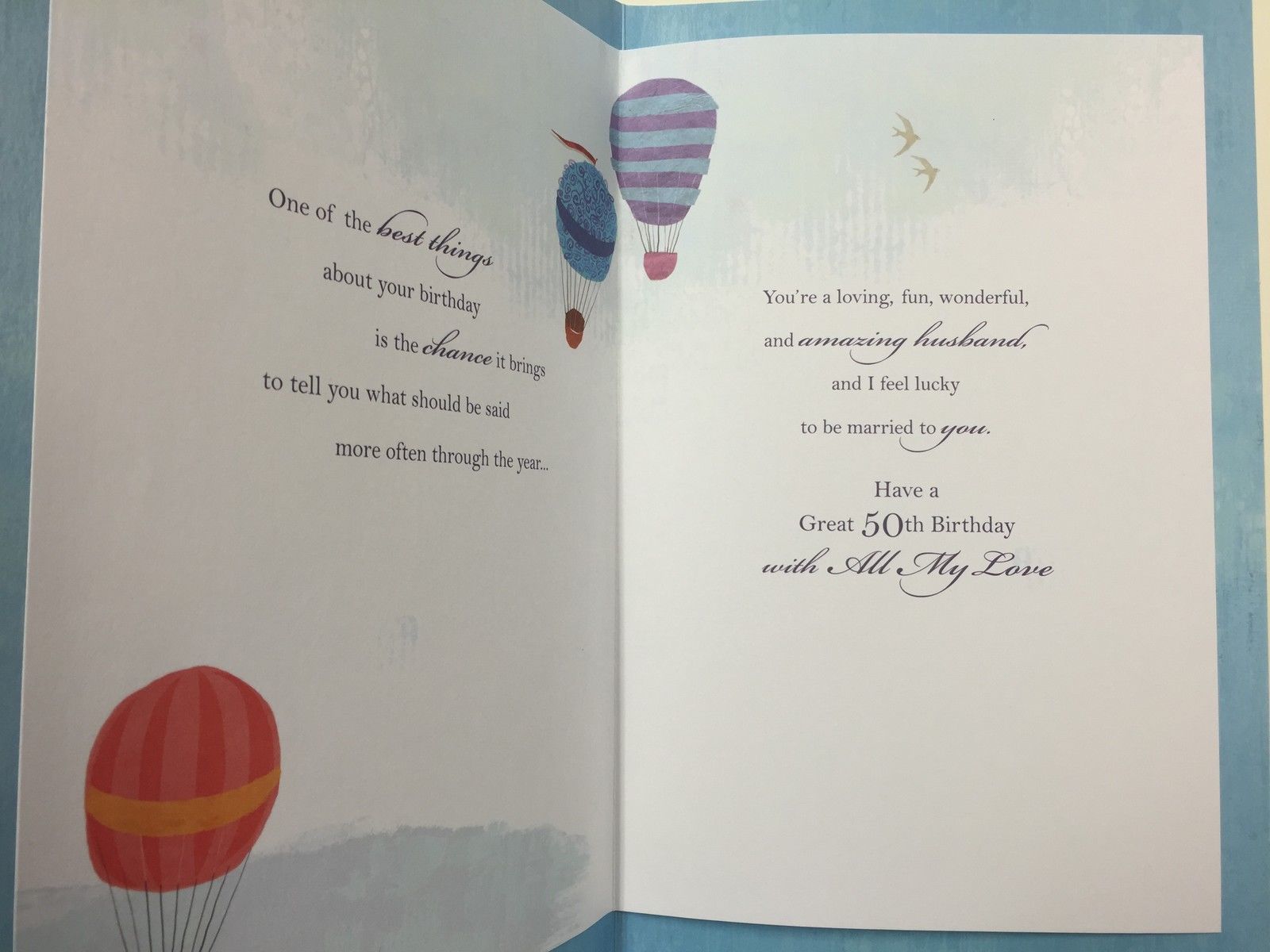 Inside Message Reads: you're a loving, fun, wonderful, and amazing Husband, and I feel lucky to be married to you. Have a great 50th Birthday with all My Love