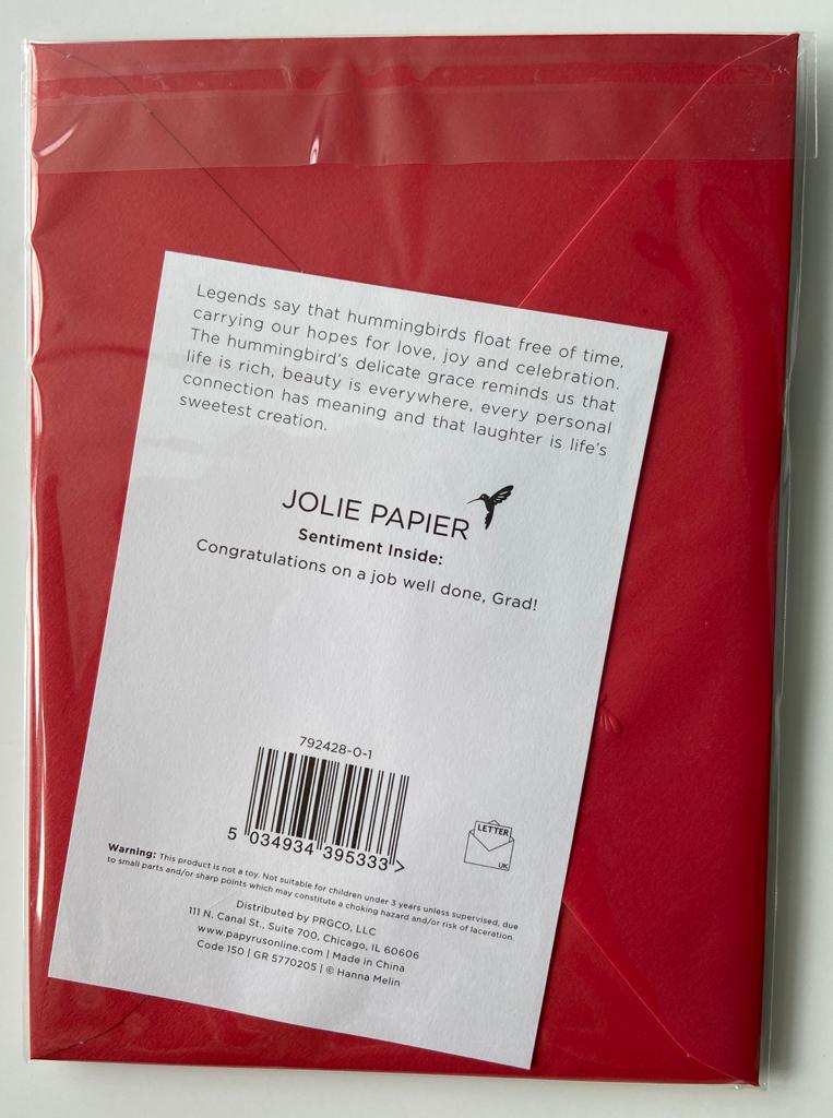 Send your congratulations on their Graduation with this elegant card featuring embellishment detailing, wishing them the best of luck in their new job INSIDE MESSAGE: Congratulations on a job well done, Grad!  Envelope size: 178mm x 123mm