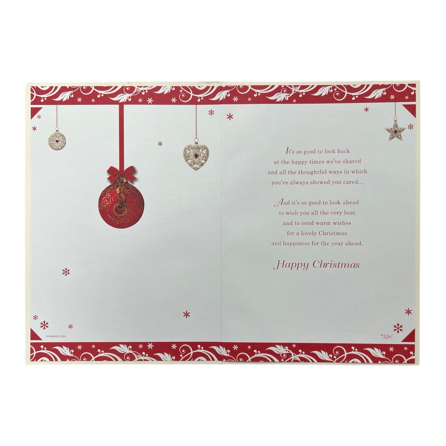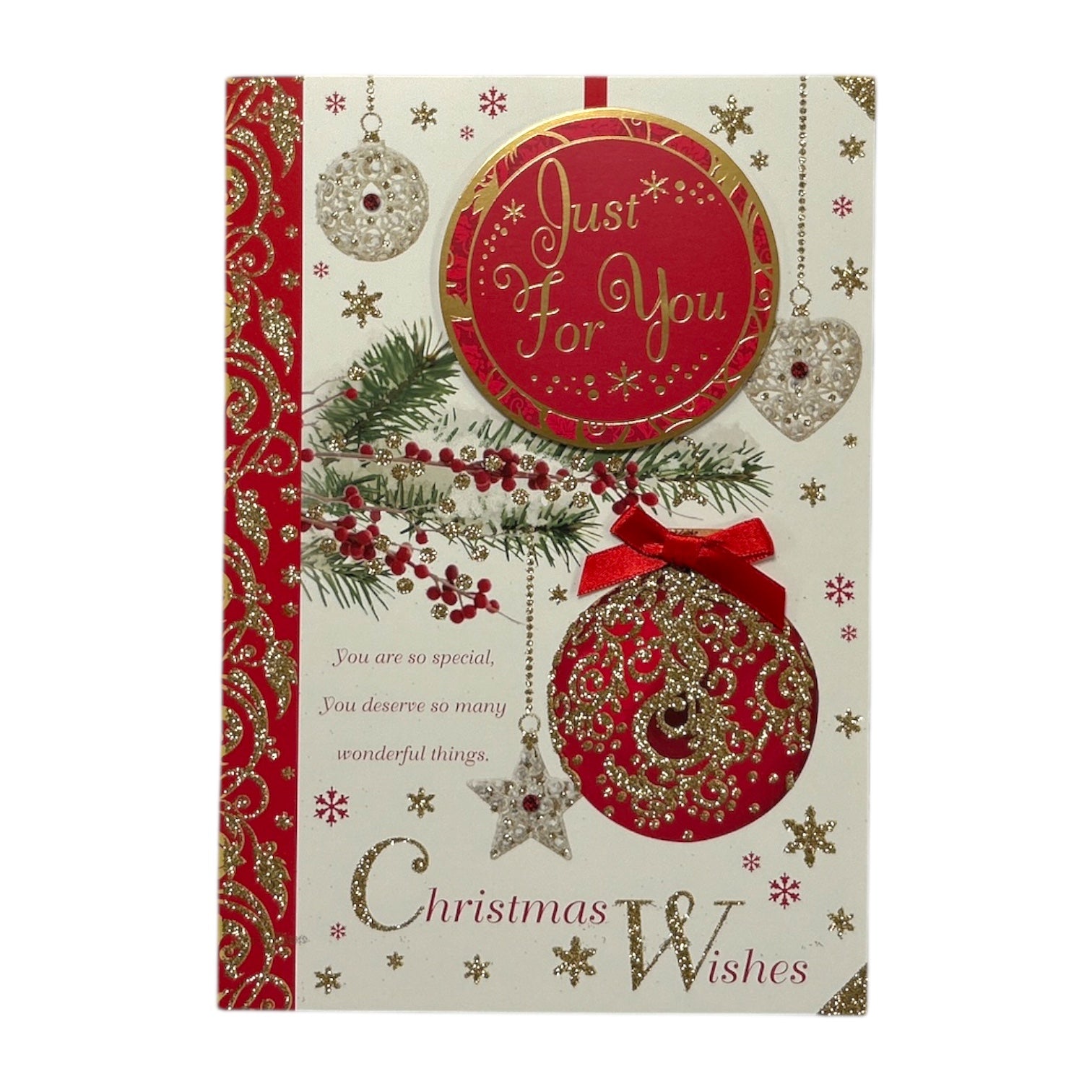 Just For You Hanging Decorative Baubles Design Open Christmas Card