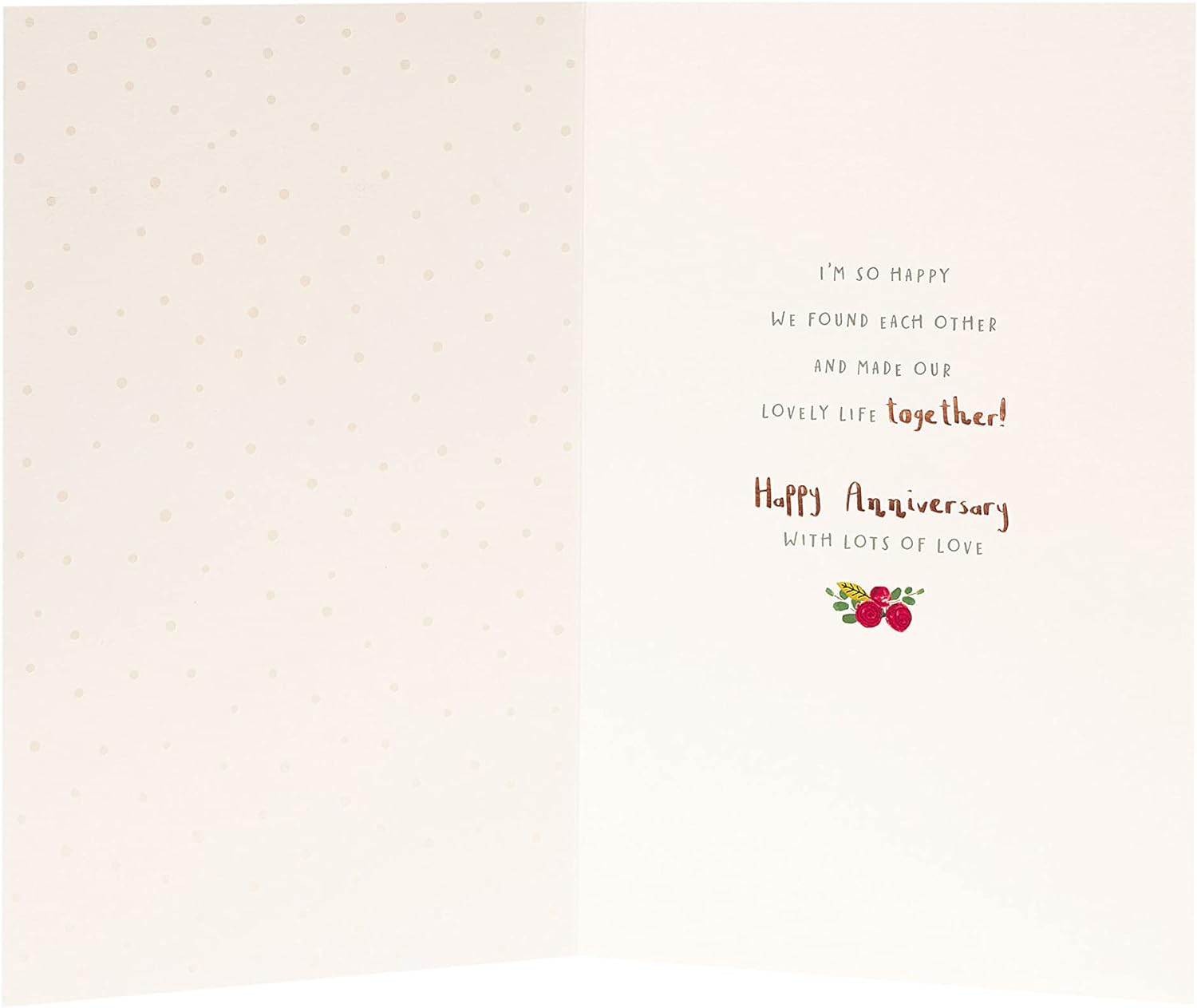 From the cute Nutmeg bear presenting some roses to the intricate paper detailing, this anniversary card is sure to make your wife smile. Message Inside Reads: I'm so happy we found each other and made our lovely life together! Happy Anniversary with Lots of Love. Card Size: 165mm x 254mm. Envelope Included.