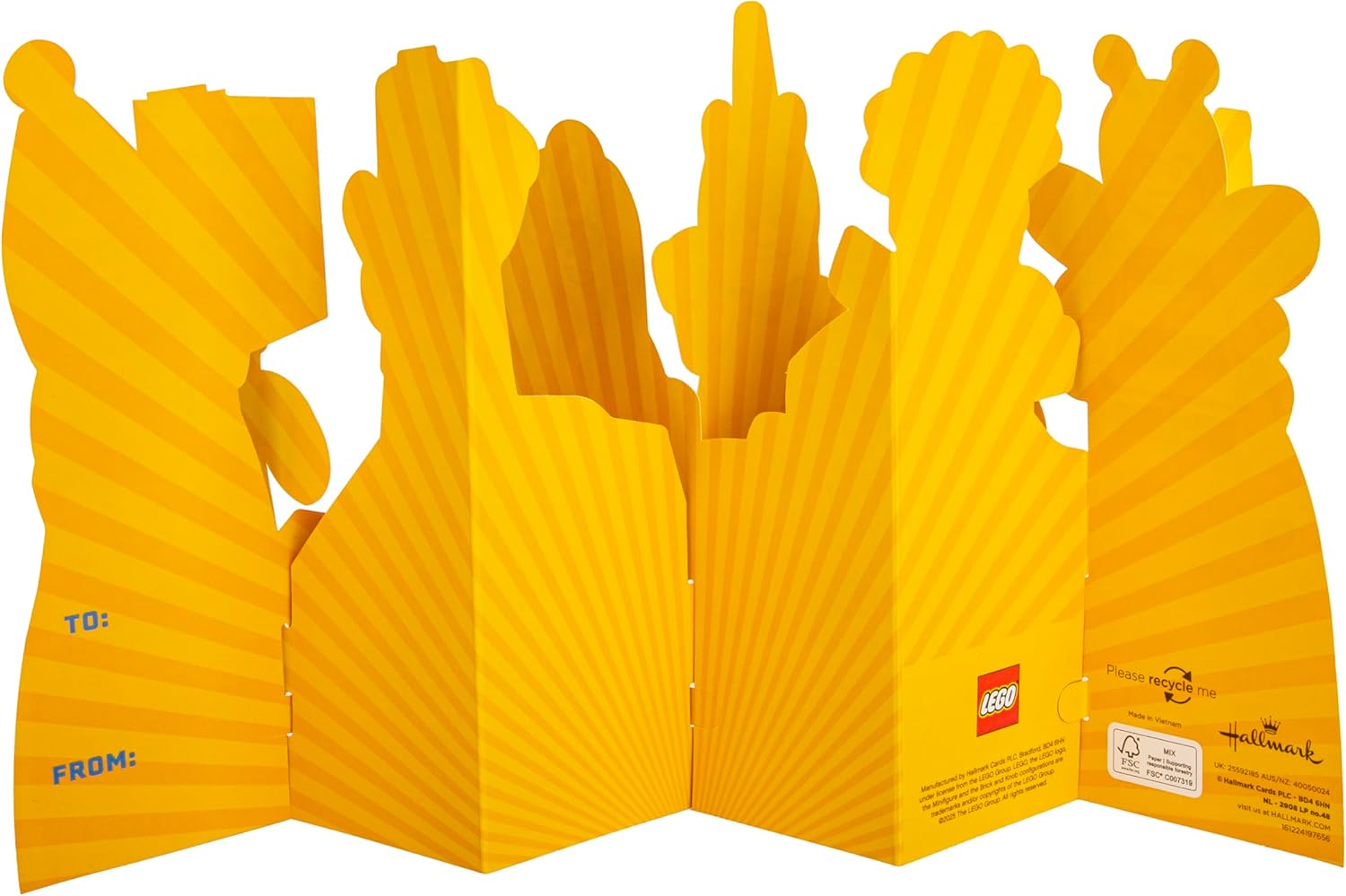 Wish them the most epic, awesome and exciting Birthday of a lifetime, with this incredible pop up Birthday card from Hallmark's LEGO collection. Perfect for LEGO fans of all ages, this card is the perfect addition to make their day awesome! Printed on high-quality board, this Birthday card pops up to reveal a Birthday banner with LEGO characters, features metallic turquoise foil details, die-cut details, and the message 'Happy Birthday!' on the front. This card is fully recyclable, and made of material from well-managed, FSC-certified forests and other controlled sources. Celebrate their day and express your own Birthday wish to the Birthday Hero, this card includes enough space on the back for a heartfelt note, fun memory and more. The perfect way to bring joy, laughter and adventure to their Birthday! This Birthday card measures H22.8cm by W15.9cm, and is the perfect size to wish your kids lots of love. This card is accompanied with a co-ordinating Hallmark branded, yellow envelope. Within Standard UK 'Large Letter' Size Limits.