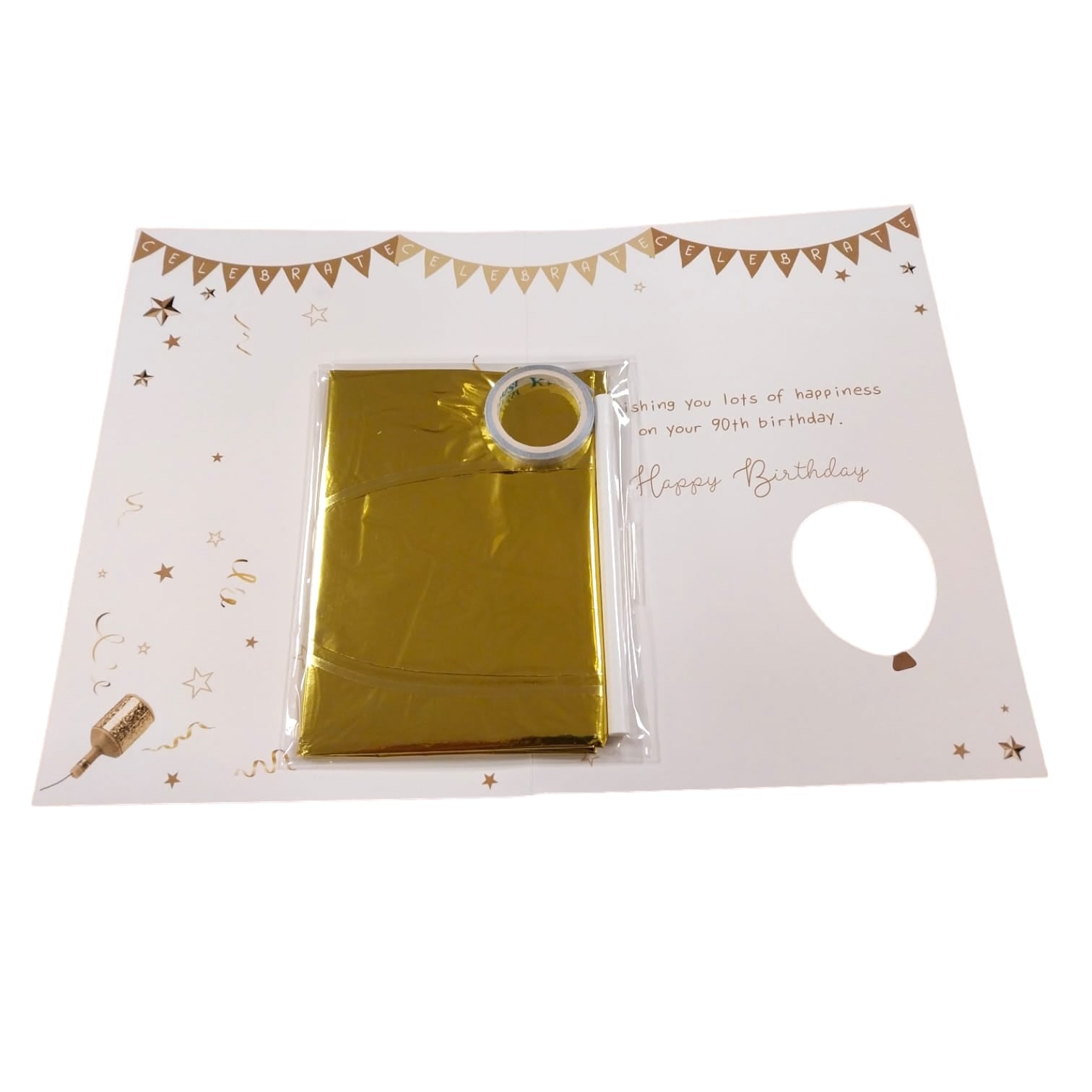 A contemporary foil finished greeting card by Balloon Boutique. Air fill only (not suitable for helium). Includes 2 Foil Balloons, straw for inflating balloons. 2m Ribbon for handing balloons. Unsuitable for helium. Size of card 190x130mm. Foil finish adds an extra touch of elegance and festivity to the card, perfect for celebrating such a special occasion. With its vibrant colours and celebratory design, it's sure to bring a smile to the birthday celebrant's face. The imagery of a balloon bouquet on the card symbolizes joy, celebration, and the excitement of marking another milestone. Sending or giving a card like this is a wonderful way to convey heartfelt birthday wishes and celebrate the remarkable journey of the person turning 90. It's a keepsake that they can cherish for years to come, reminding them of the love and warmth shared on their special day.
