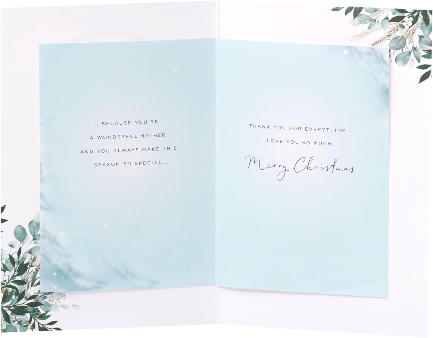 Tell your mother how much you love her with this heartfelt Christmas card, featuring a beautiful 3D effect wreath finished in gold foil. Message Inside Reads: Thank you for everything - love you so much. Merry Christmas. Card Size: 149mm x 229mm. Envelope Included.