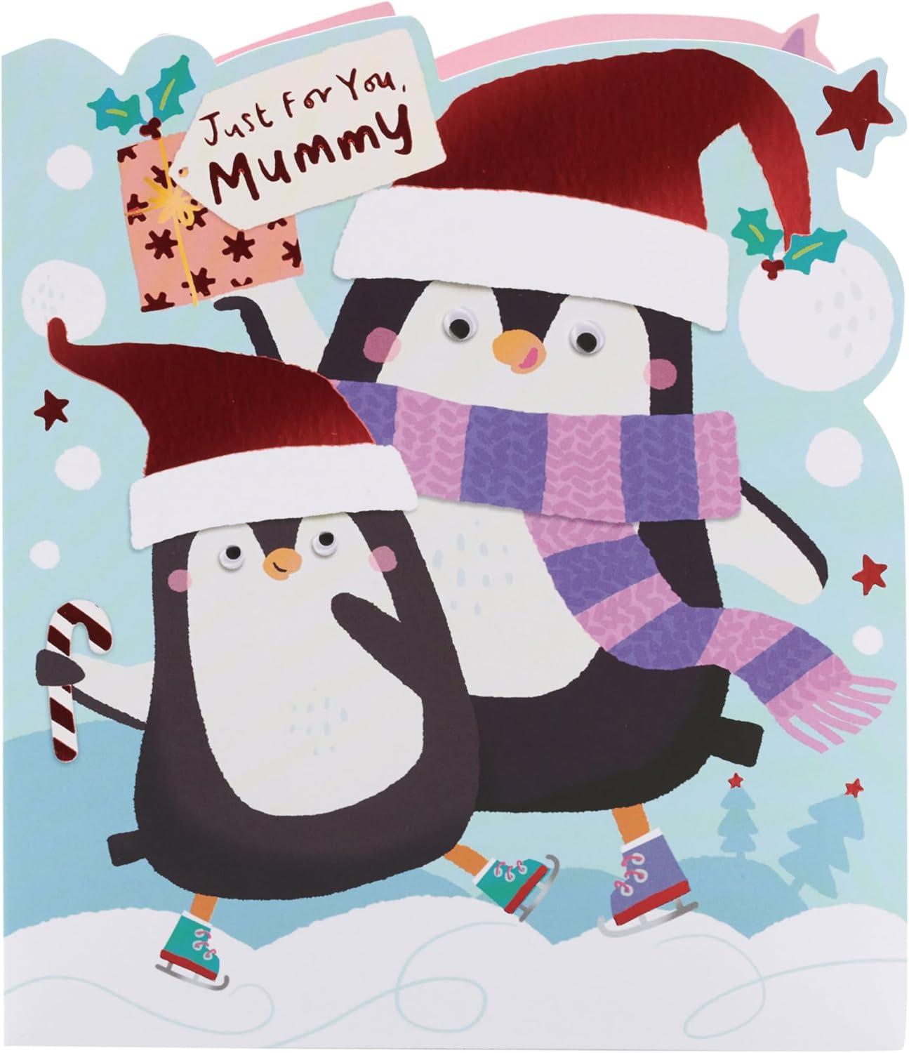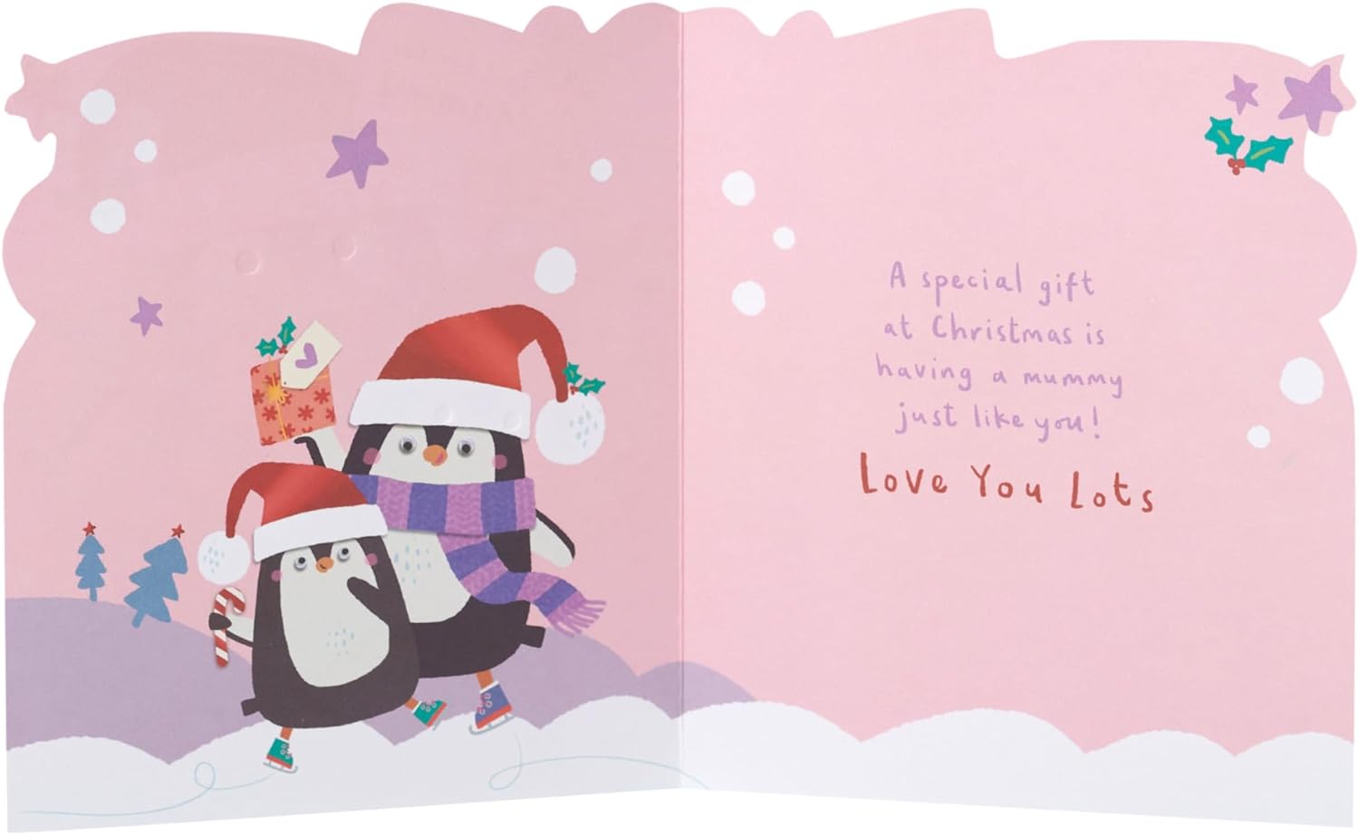 Wish your mummy a special Christmas with this specially shaped cute penguin card, featuring red foil accents and embossed detailing. Message Inside Reads: A special gift at Christmas is having a mummy just like you! Love You Lots. Card Size: 159mm x 184mm. Envelope Included.