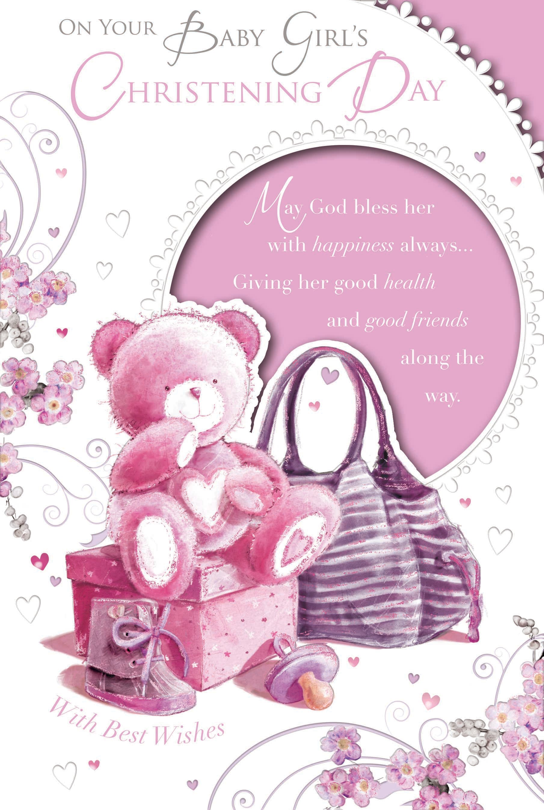 On Your Baby Girl's Christening Day Cute Teddy Design Celebrity Style Greeting Card