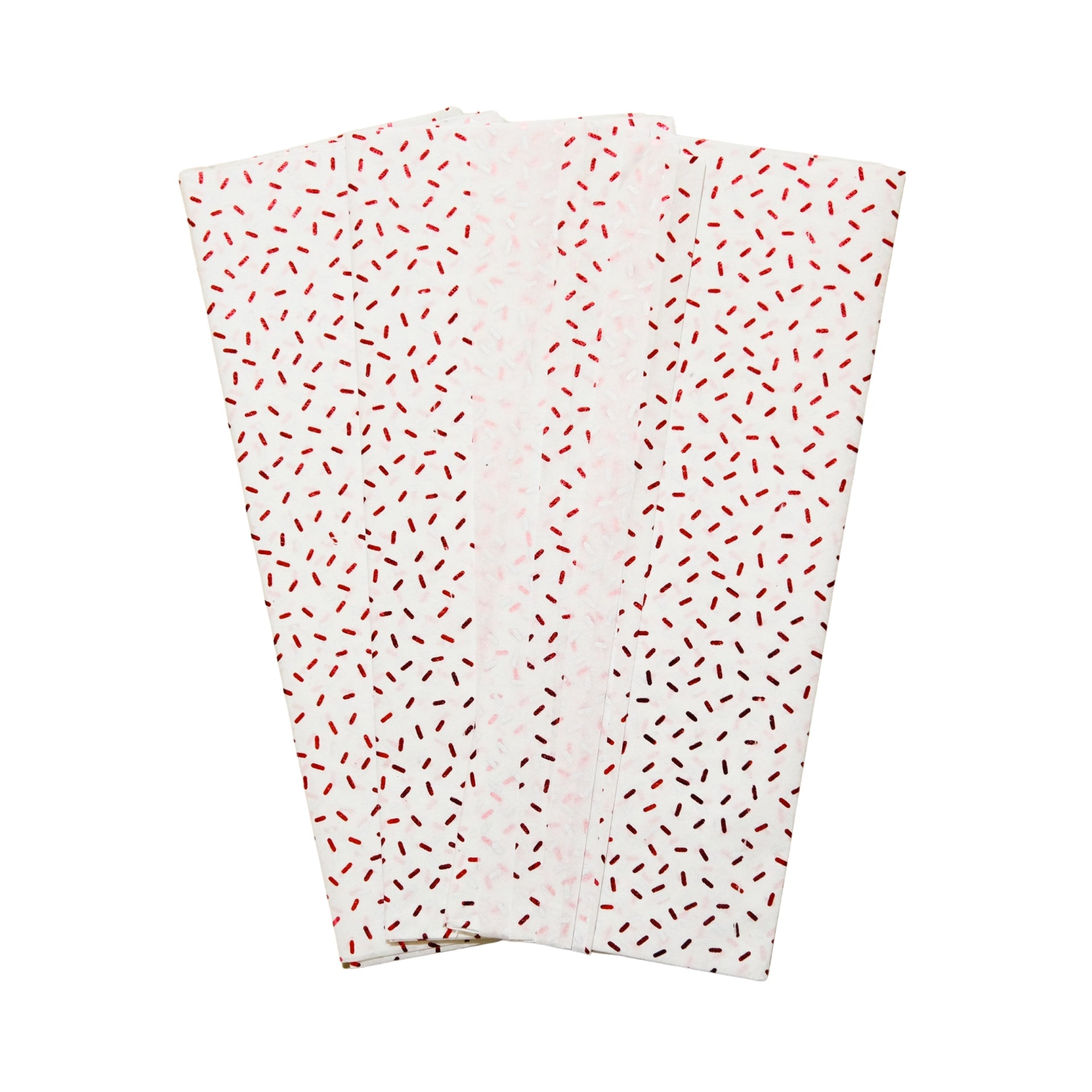 This confetti sprinkles luxury red metallic tissue paper is designed for packing, stuffing, and gentle wrapping. Each pack contains 10 sheets of 18gsm plastic-free paper, sized 50x70cm. Suitable for enhancing presentation and protecting lightweight items. The sprinkle effect design adds a lively and decorative finish.