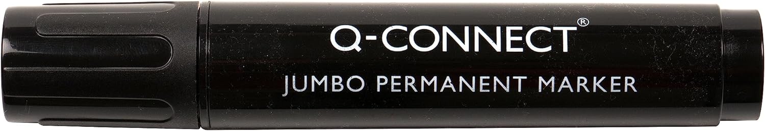 Pack of 10 Jumbo Permanent Chisel Tip Black Marker Pen. This Q-Connect Jumbo Permanent Marker is ideal for creating bold presentations, displays and projects. The large chisel tip provides a line width of 7.0-13.0mm for a wide variety of writing and drawing applications. The permanent black ink is designed not to fade, for vibrant, clear and long lasting writing. This pack contains 10 black markers.