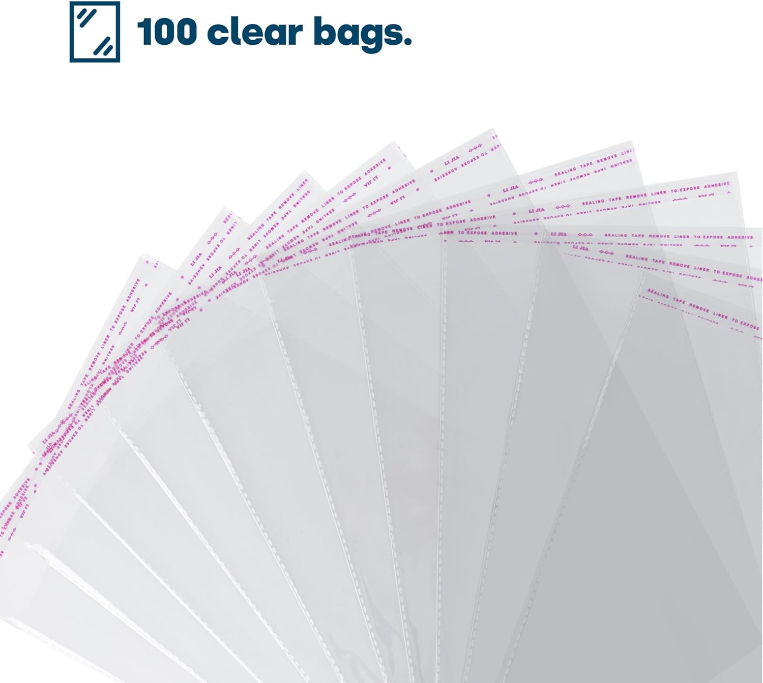 Pack of 100 Clear OPP Bags 10 x 15cm with Self-Adhesive Strip