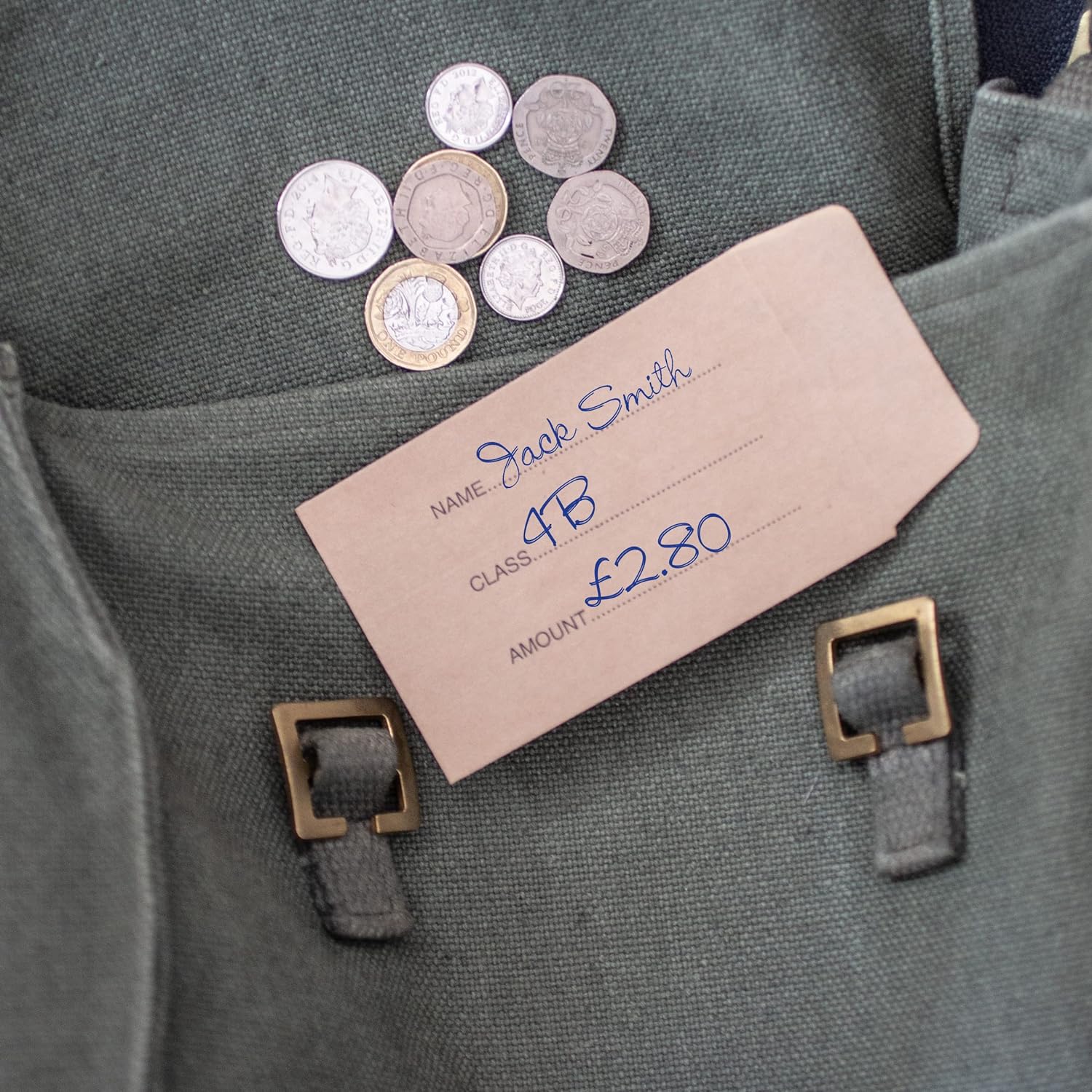 Printed on the wallets is all the relevent information for Schools Name Class Amount Ideal for Children's dinner money use.