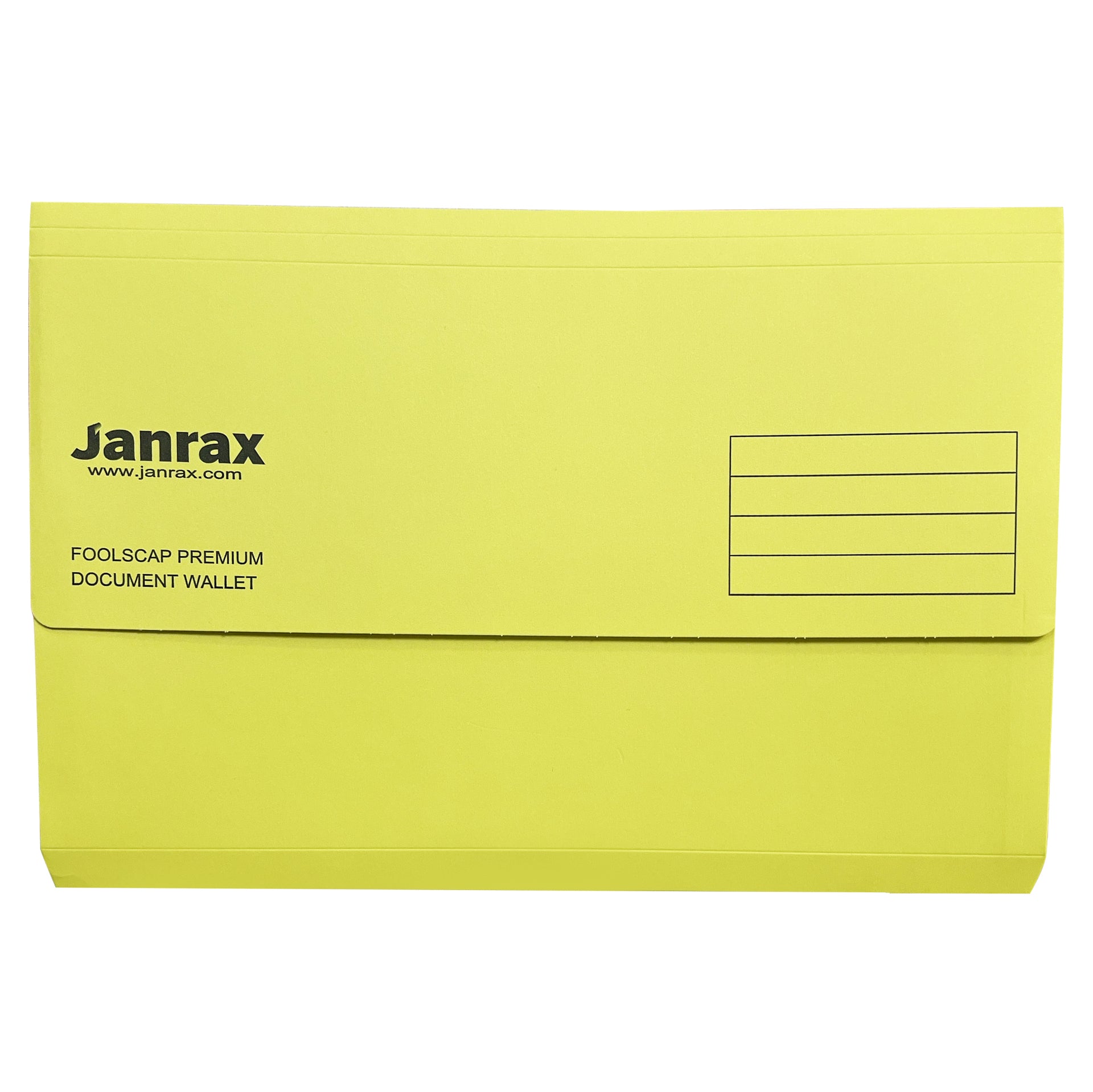 Pack of 100 Yellow Card Premium Foolscap Document Wallets