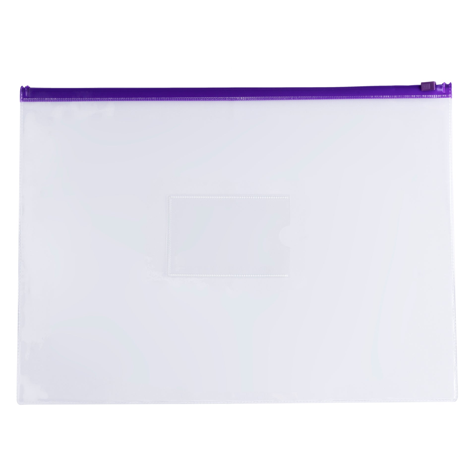 Pack of 12 A4 Clear Zippy Bags with Purple Zip