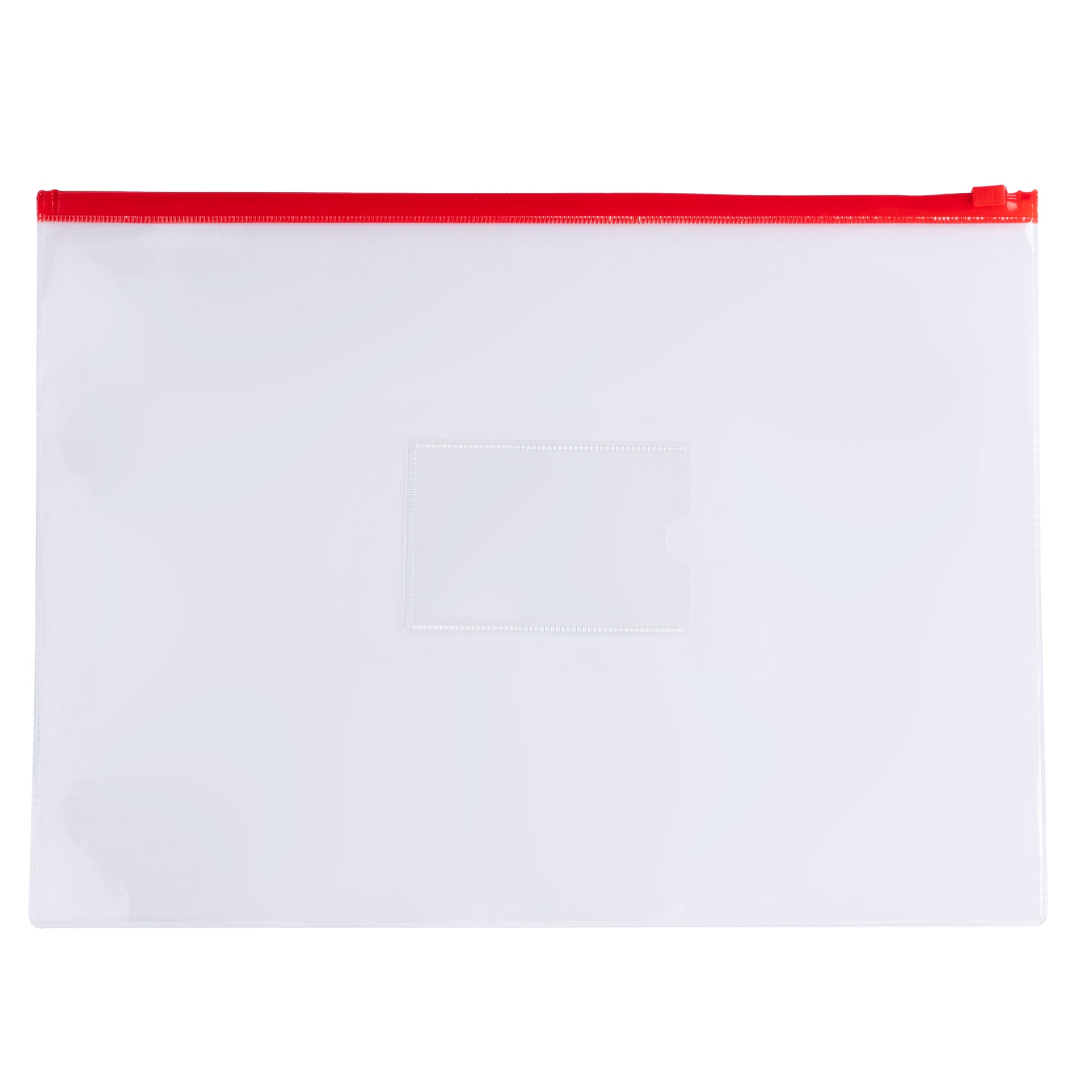 Pack of 12 A4 Clear Zippy Bags with Red Zip