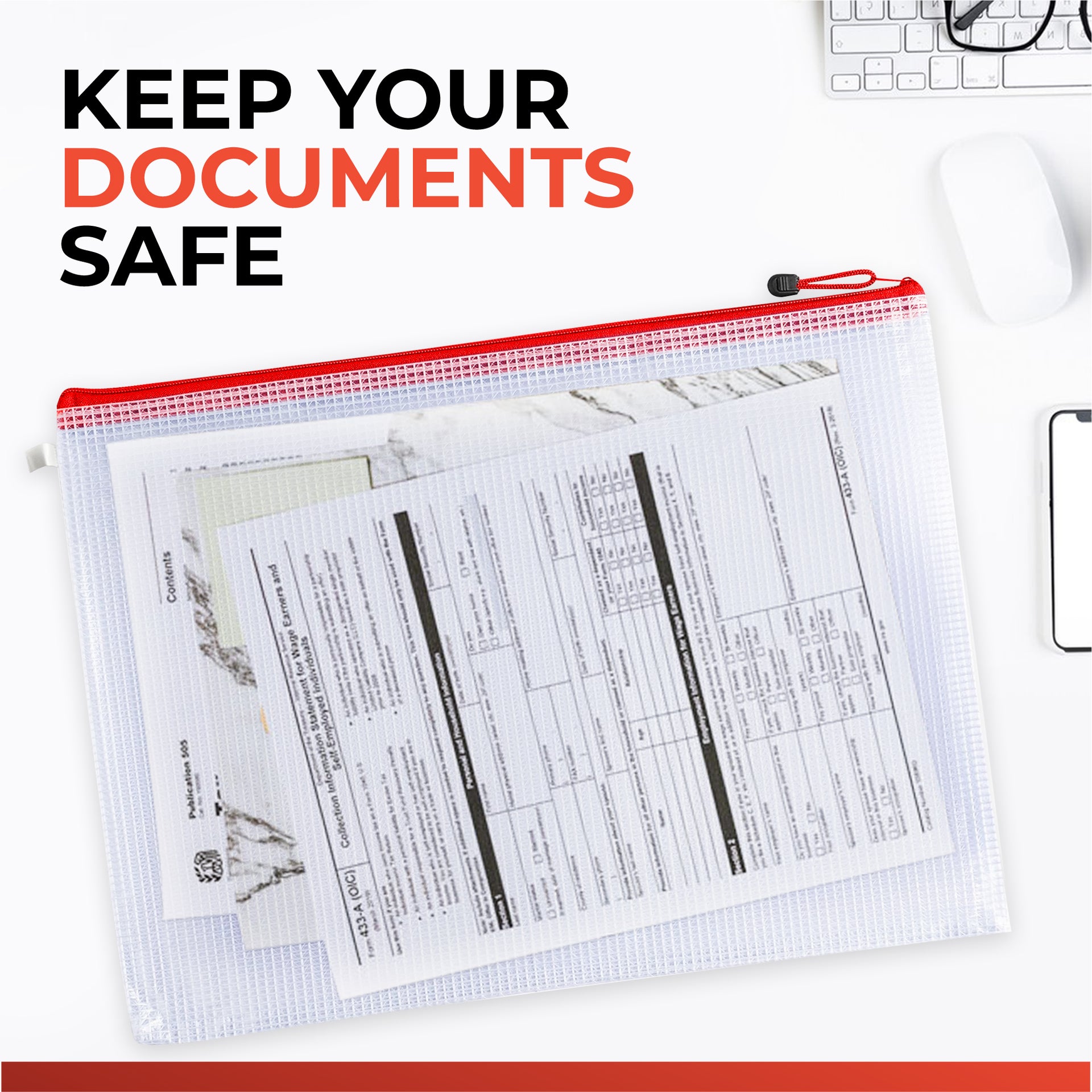 Pack of 12 A4 Red Zip Strong Mesh Bags - Tough Waterproof Storage