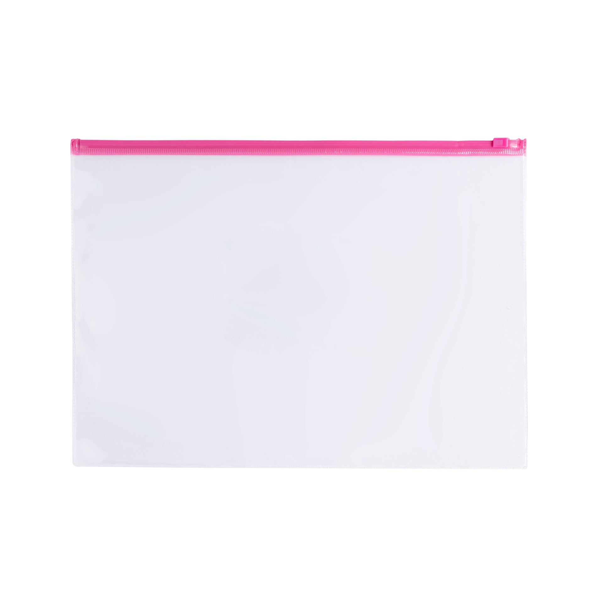 Pack of 12 A6 Clear Zippy Bags with Pink Zip