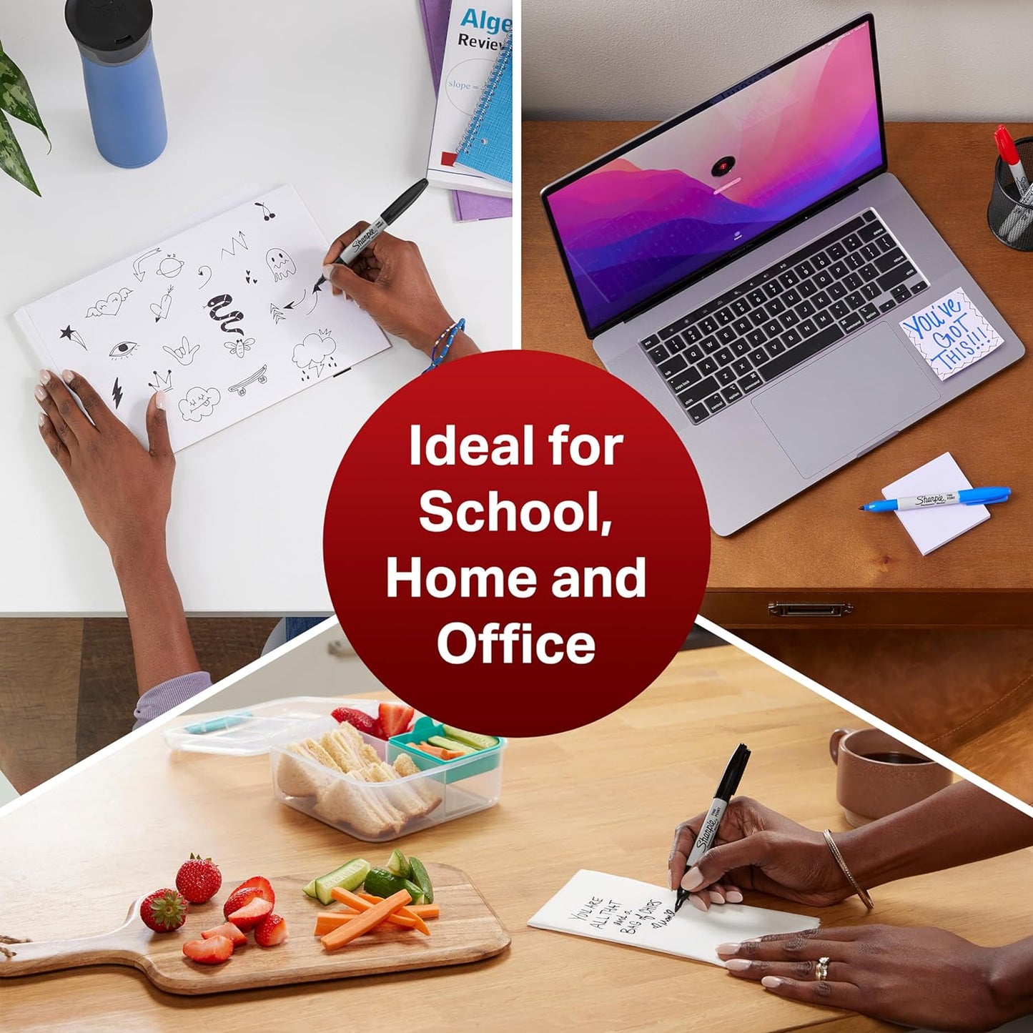 Pack of 12 Sharpie Permanent Marker Pens. permanent ink marks on paper, plastic, metal, and most other surfaces. Intensely brilliant colours create eye-popping, vibrant impressions. Remarkably resilient ink dries quickly and resists fading and water. Endlessly versatile fine tip makes impressively bold, detailed marks. Colourful options: Includes an exciting range of 12 Sharpie permanent markers.
