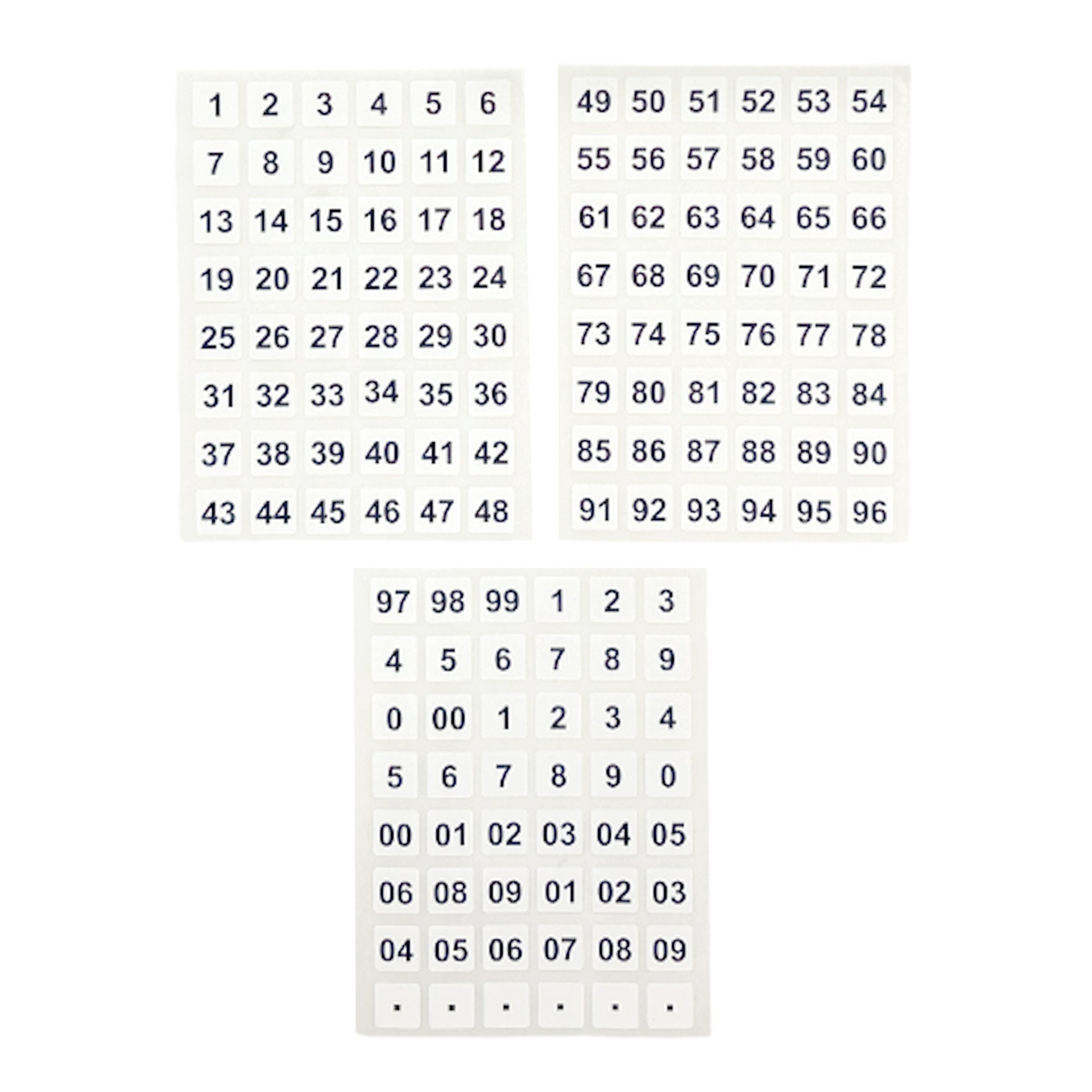 Pack of 144 Black on White 00-99 Number 12x12mm Self Adhesive Labels