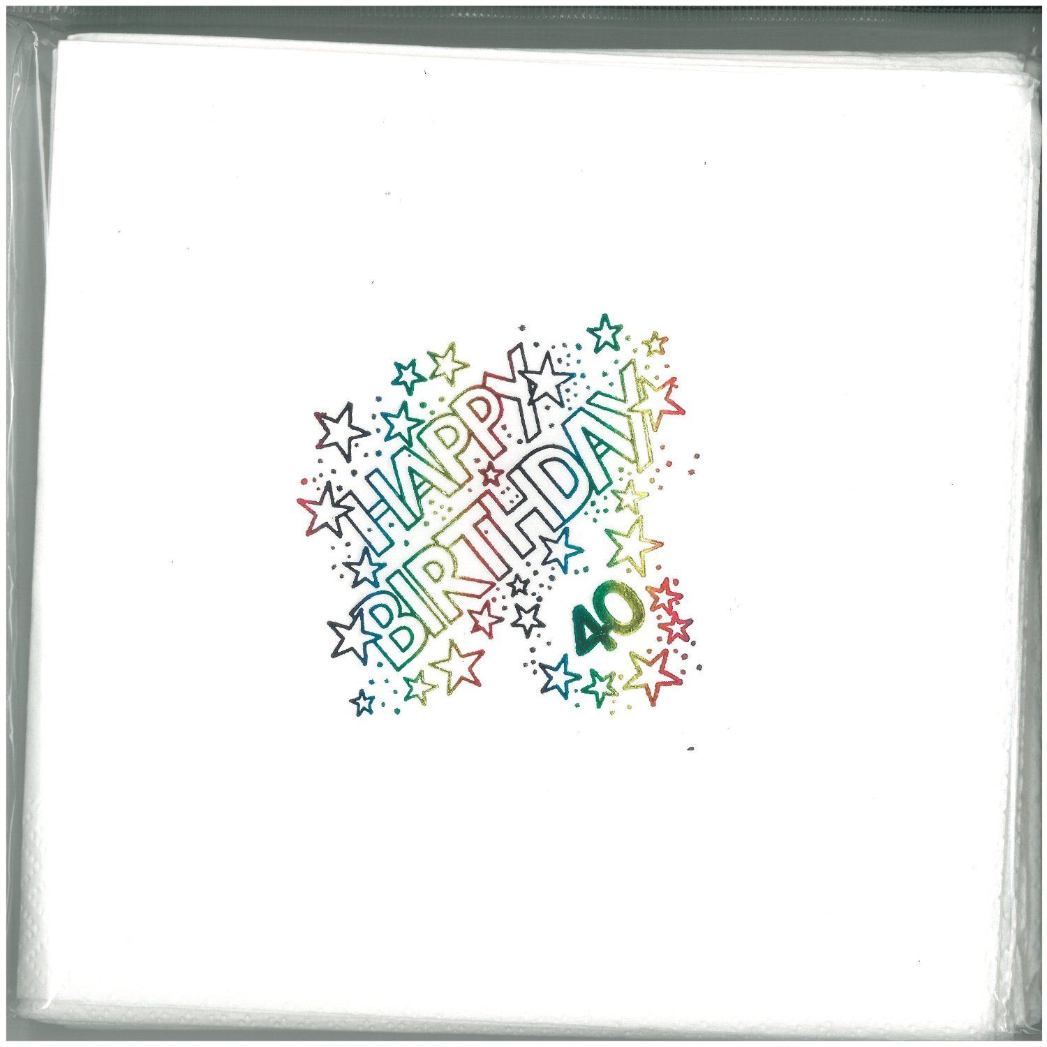 Pack of 15 Luxury 40th Birthday Foil Finished Large Napkins (3 Ply).