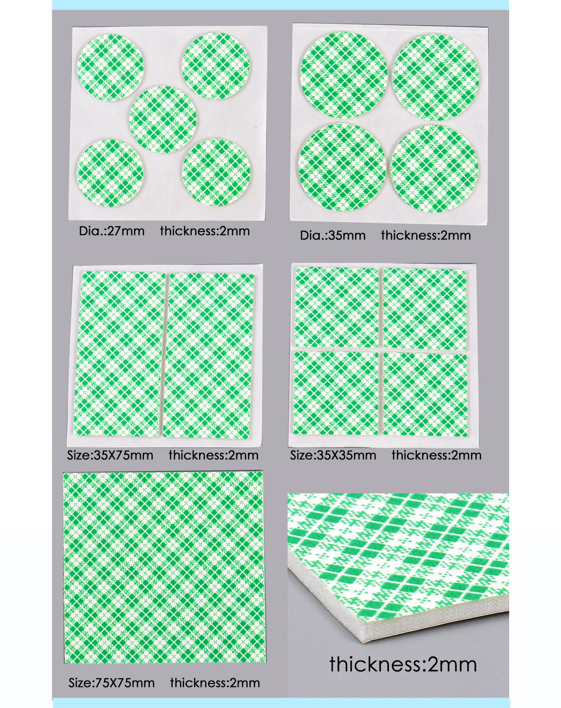 Pack of 16 Double-Sided Mounting Tapes Squares 35 x 35mm. The double sided foam adhesive tape pad is made of high-quality materials, strong adhesion, very durable, environmentally friendly and non-toxic, and can be used with confidence. The double sided foam adhesive tape pad has good adhesion and load-bearing properties, and can replace traditional fixing methods such as screws and rivets. These double sided foam adhesive tape pads are very suitable for sticking various similar and different materials together, and sticking on smooth and clean areas such as refrigerators, walls, bed posts, and glass.