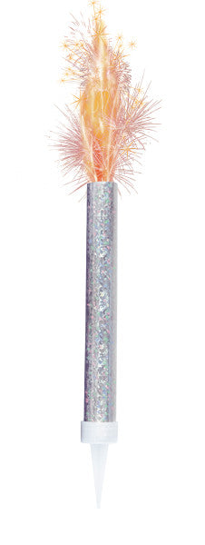Pack of 2 Silver Prismatic Ice Fountains. These fountain candles will definitely create an eye-catching design for your birthday cake. These fountain candles can match different cake styles and make it more attractive. These cake candles are made of eco-friendly materials and harmless for your health.